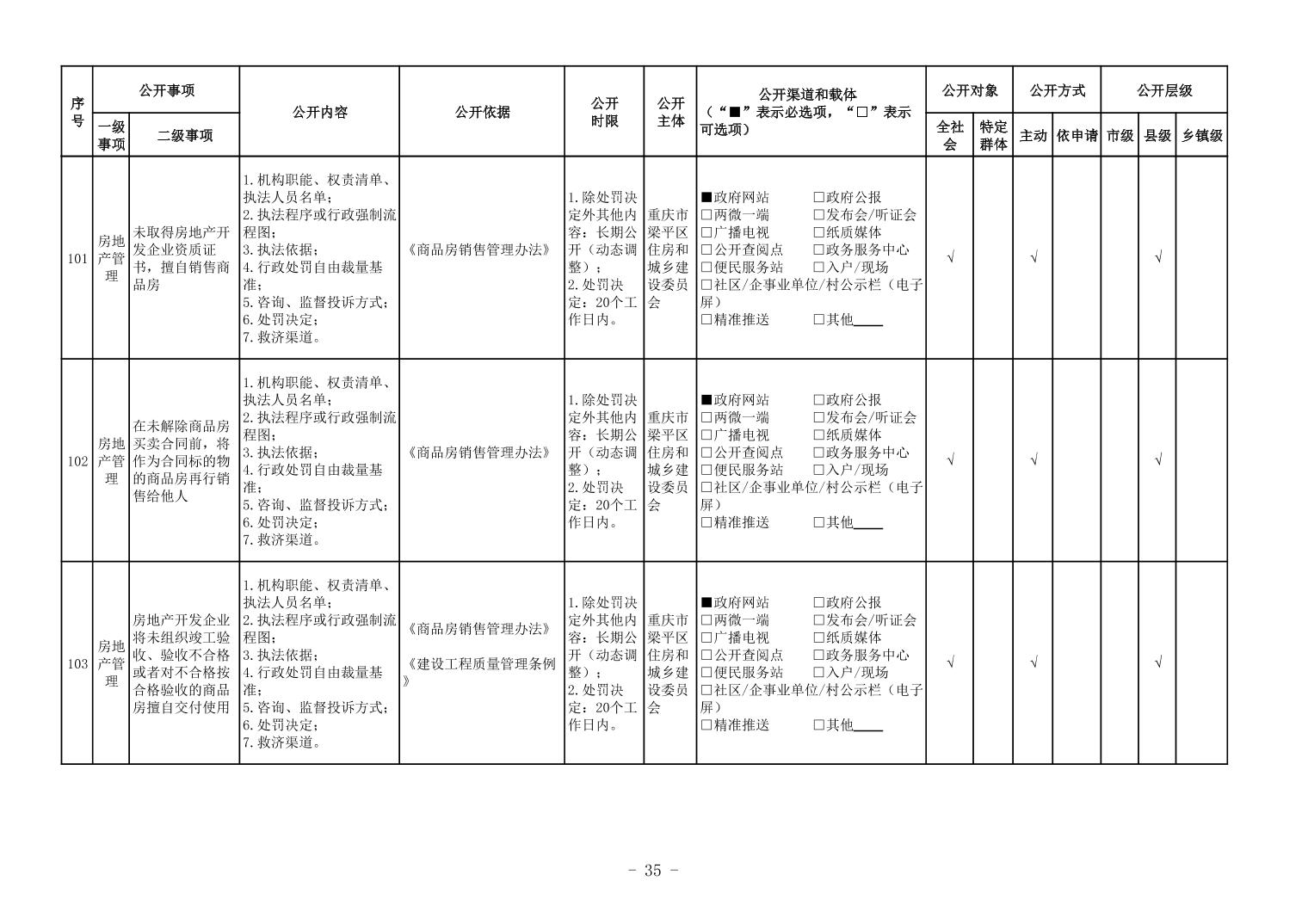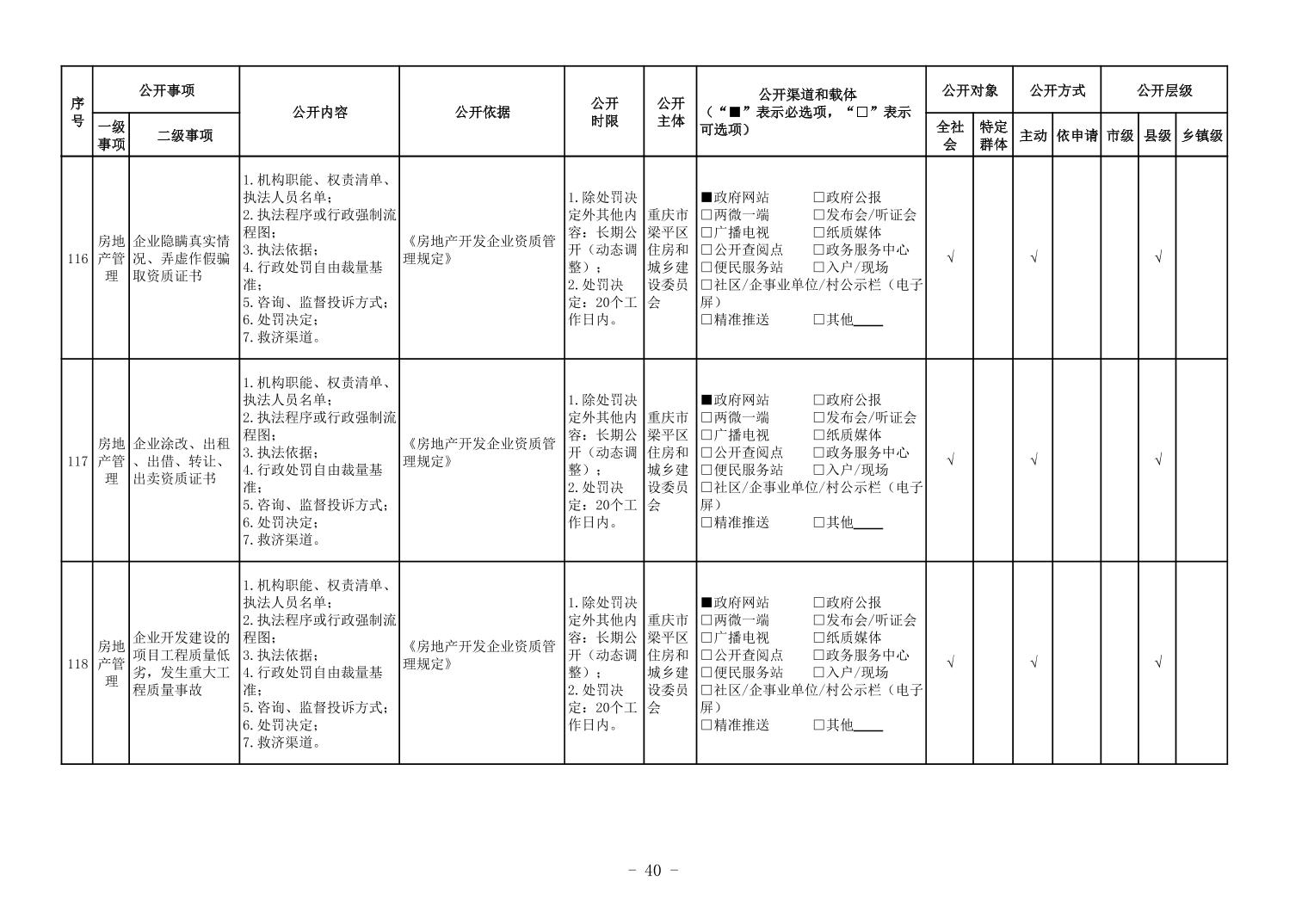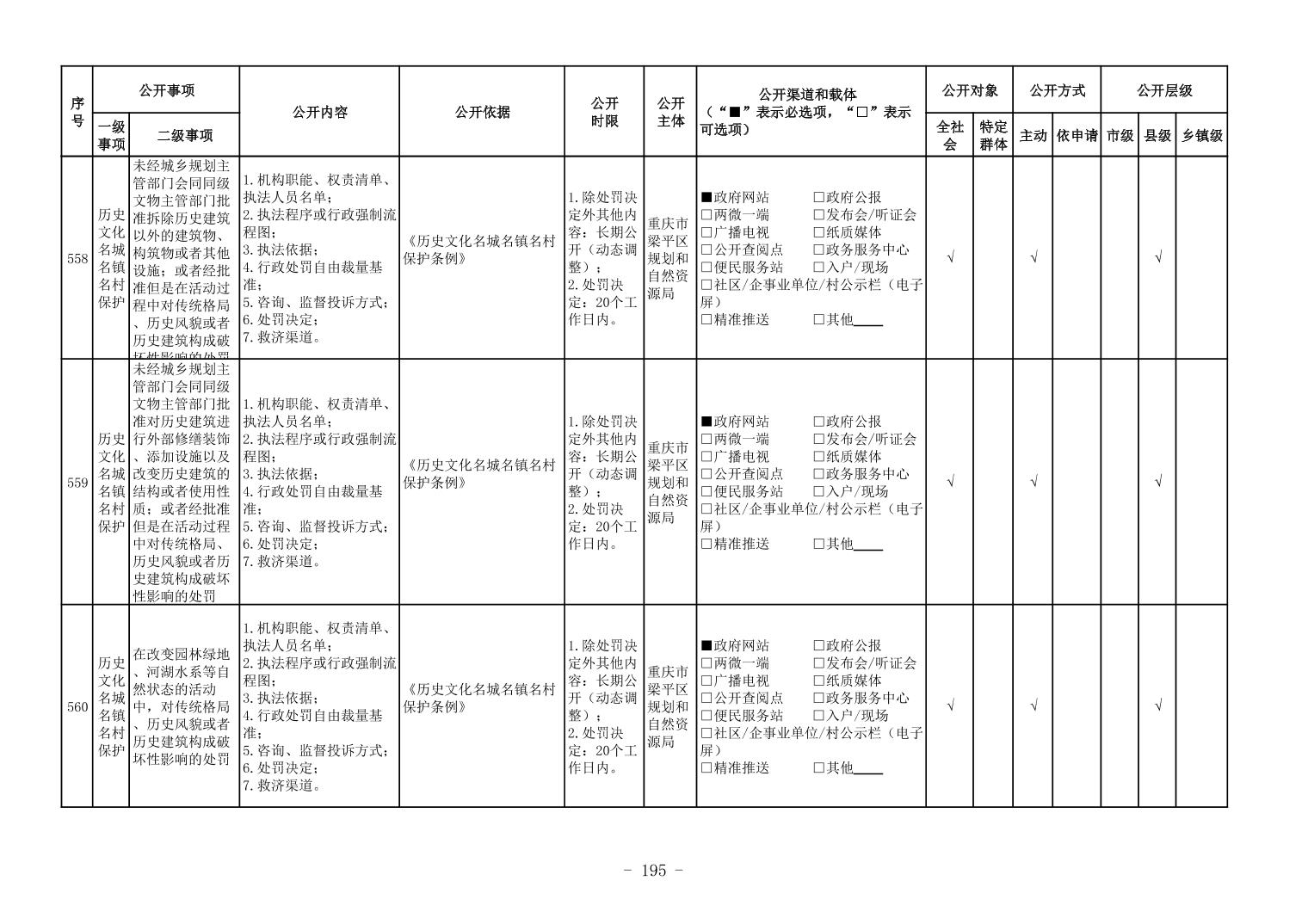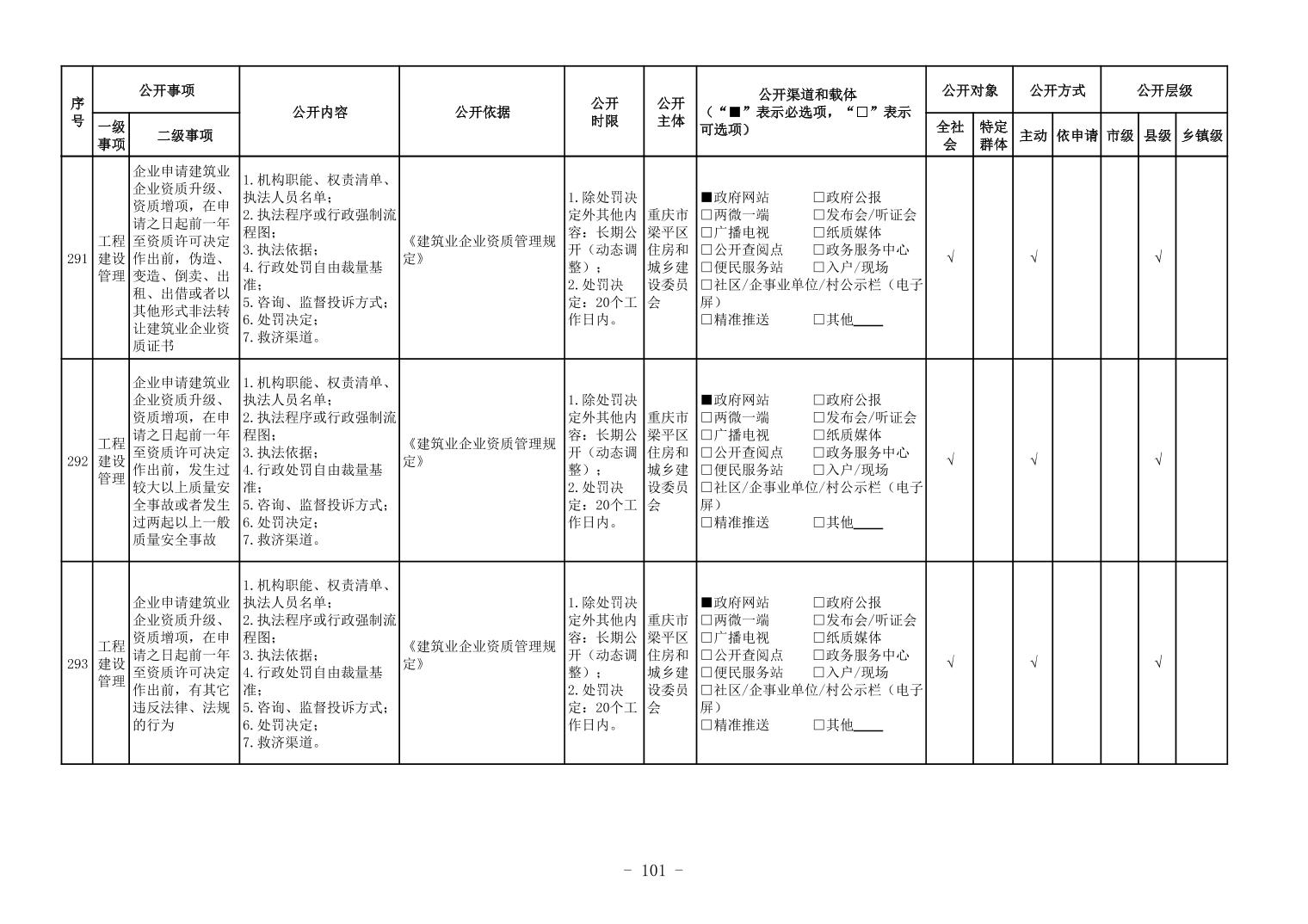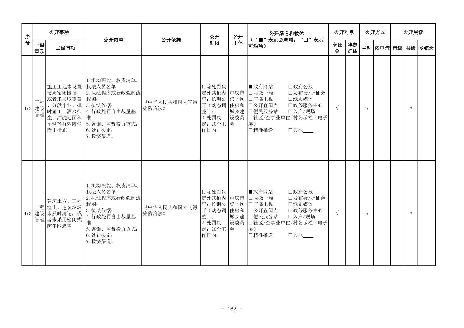 重慶市梁平區城市綜合執法領域基層政務公開標準目錄