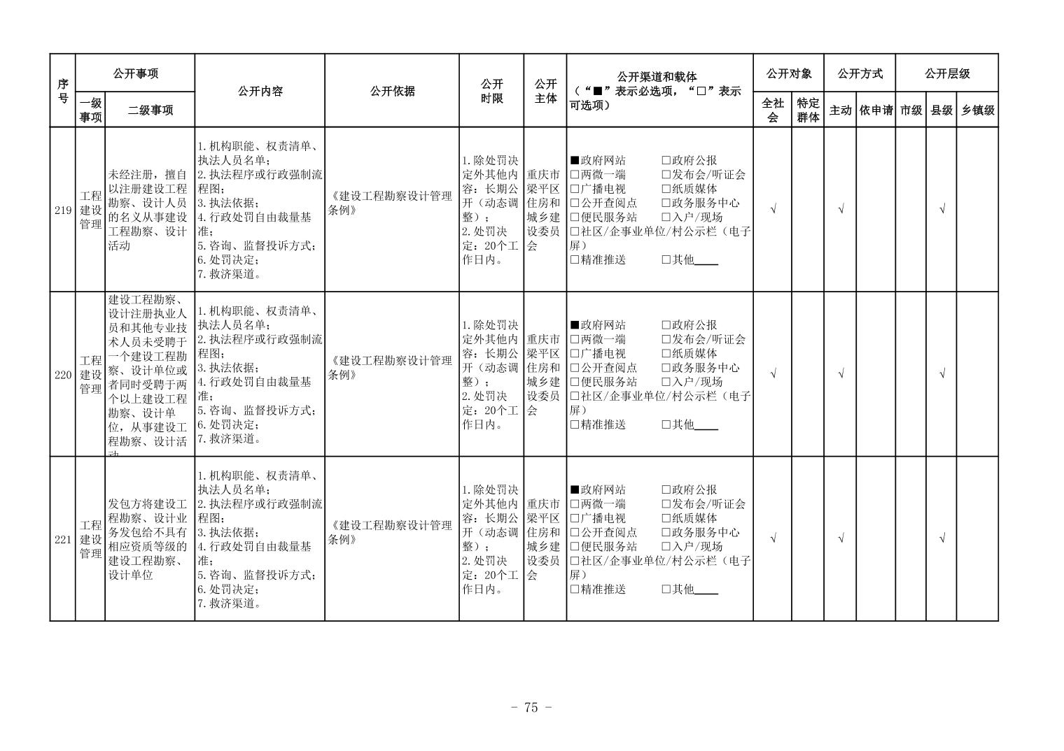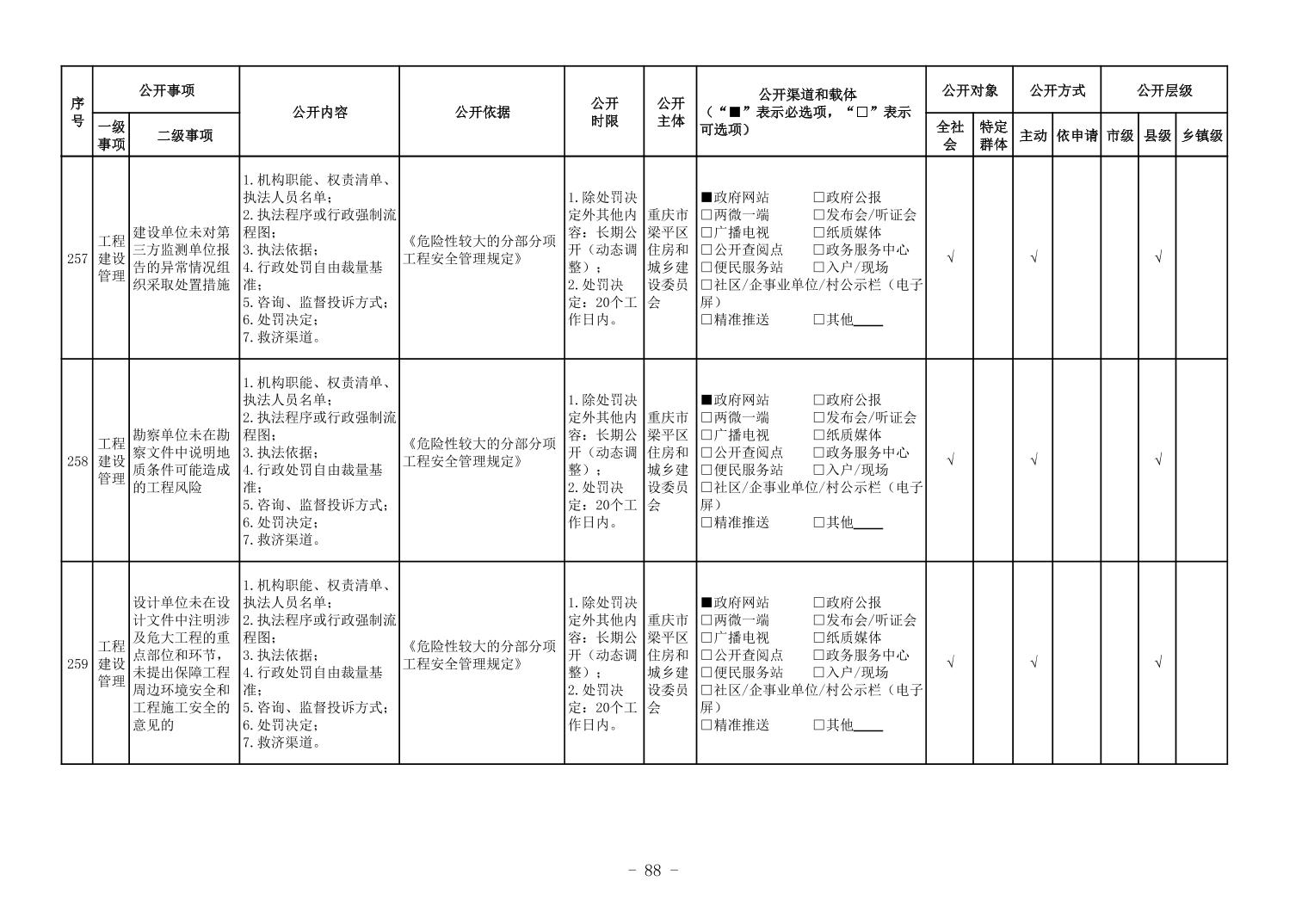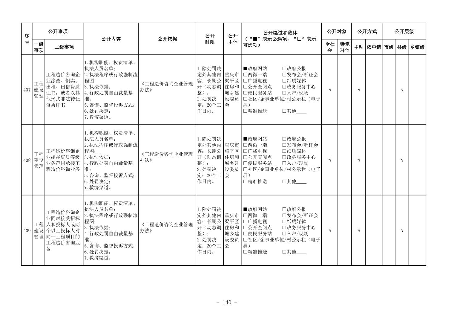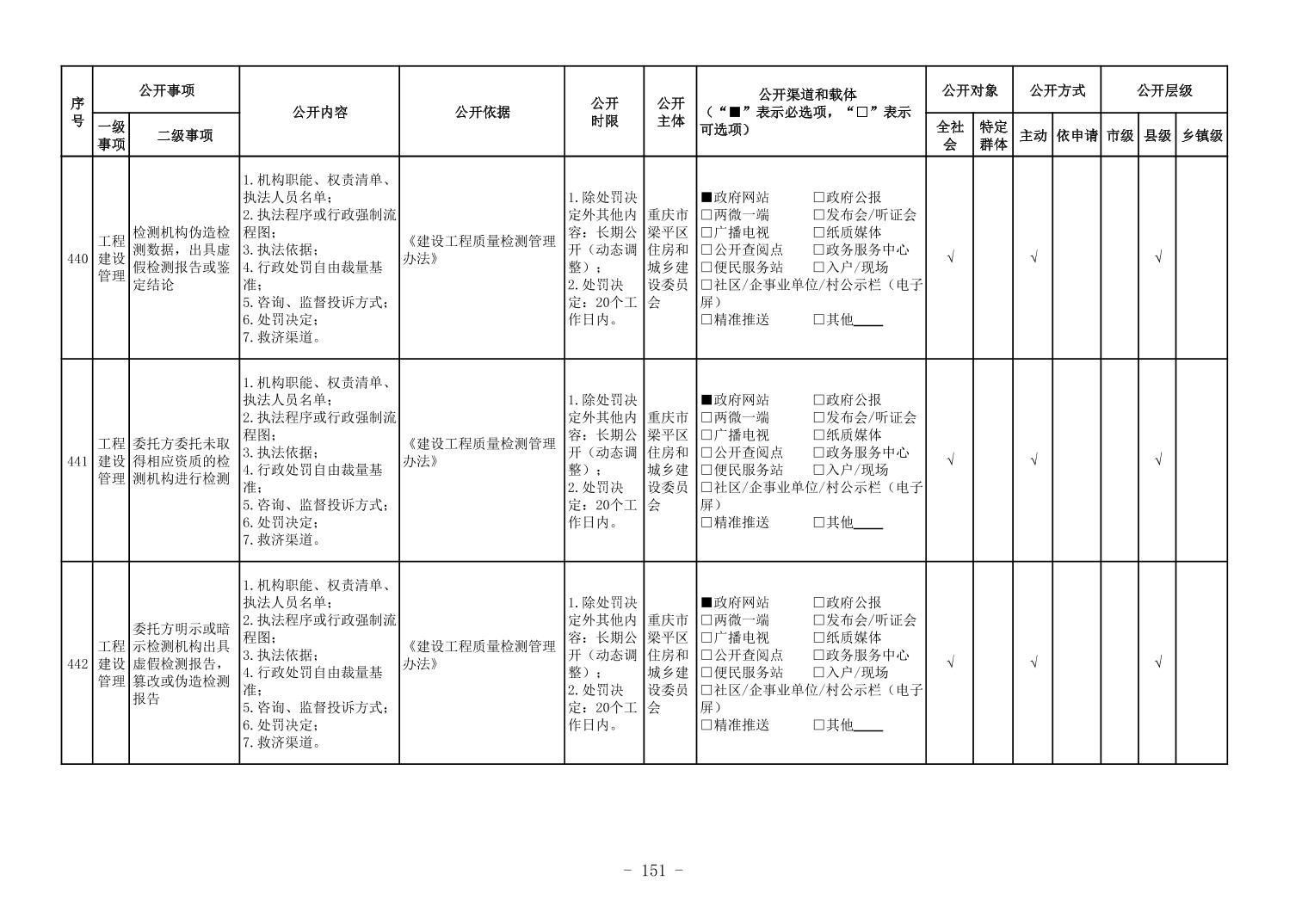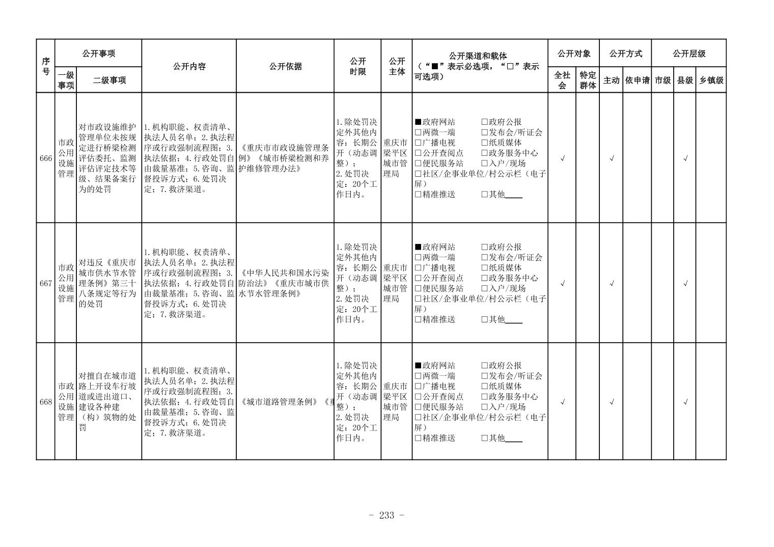 重慶市梁平區城市綜合執法領域基層政務公開標準目錄