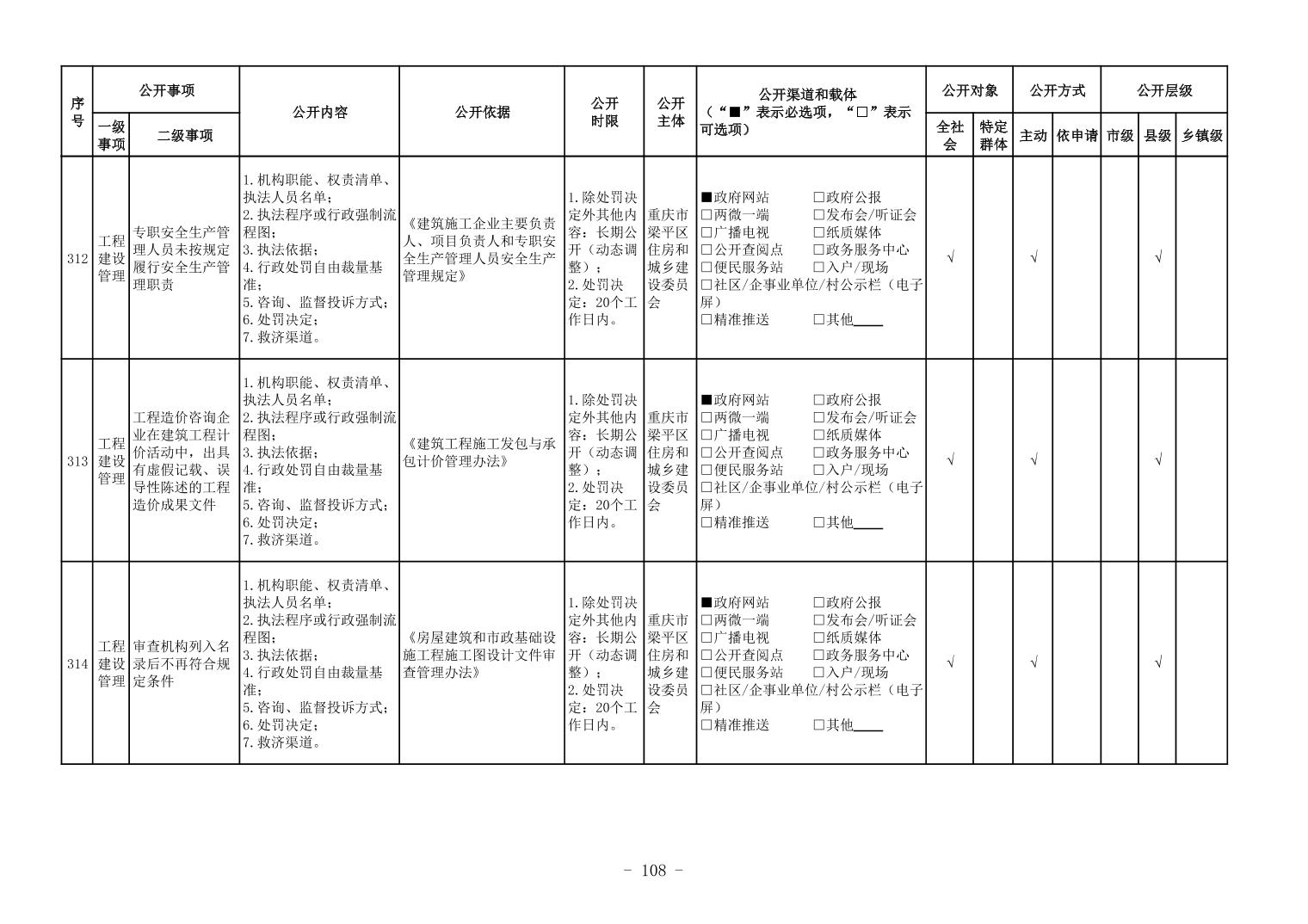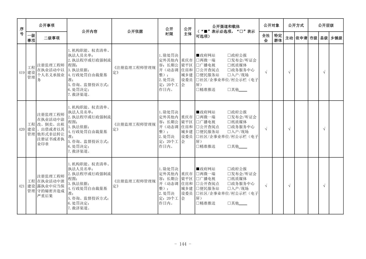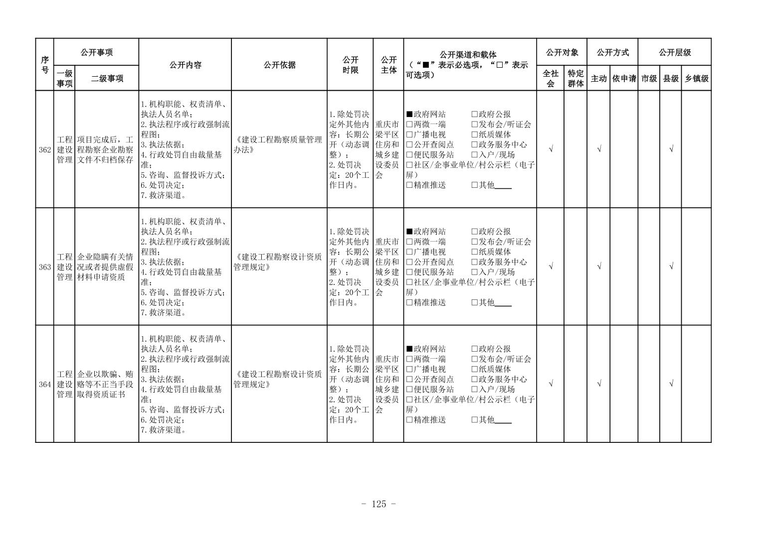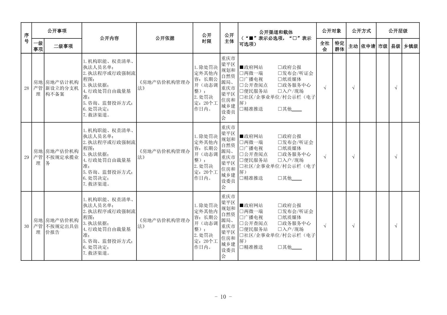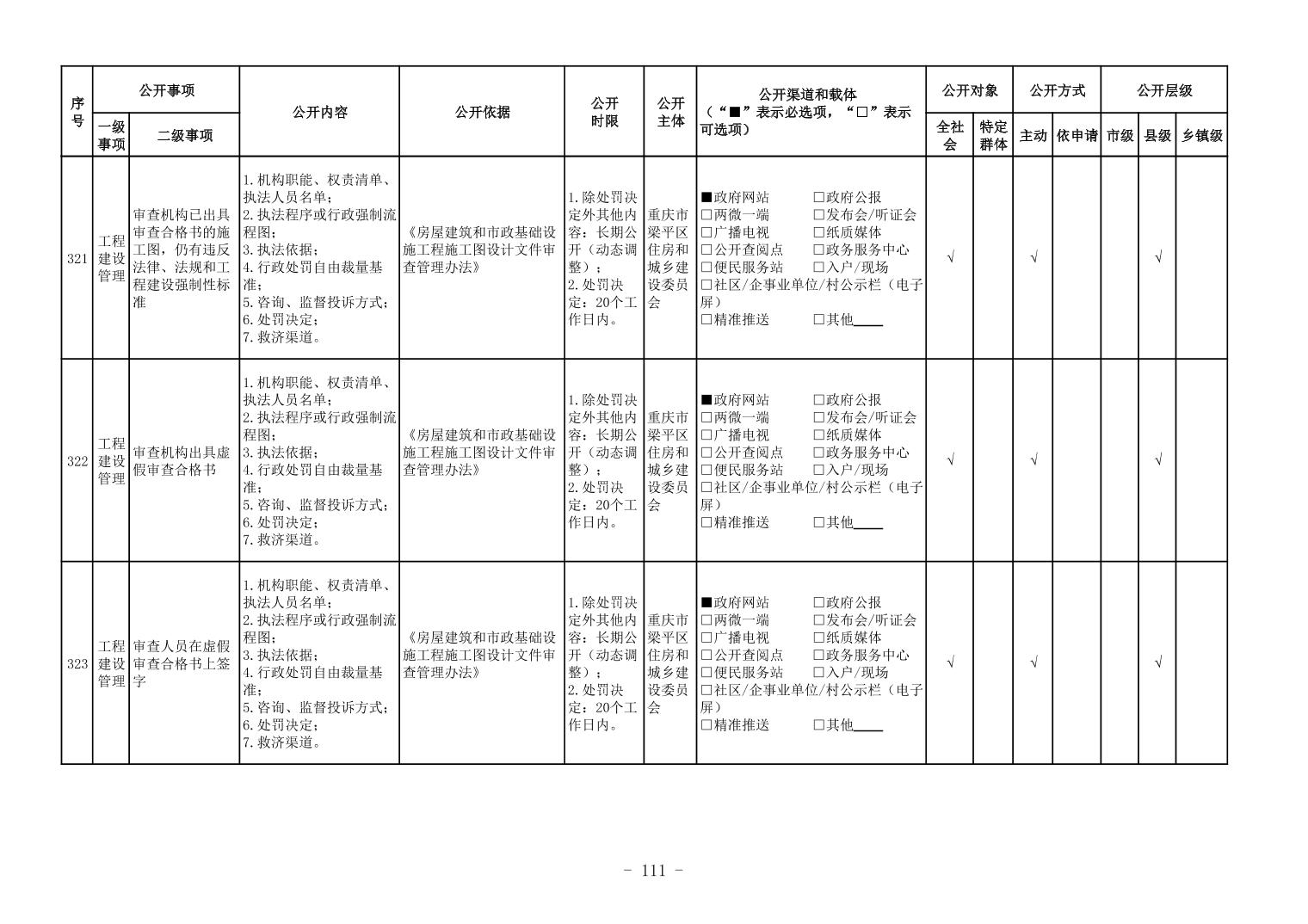 重慶市梁平區城市綜合執法領域基層政務公開標準目錄