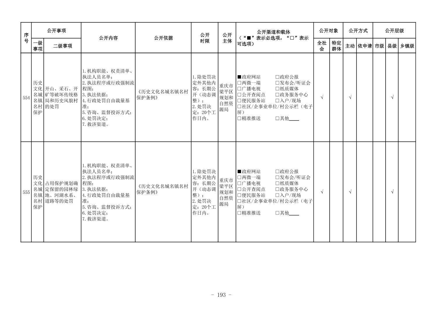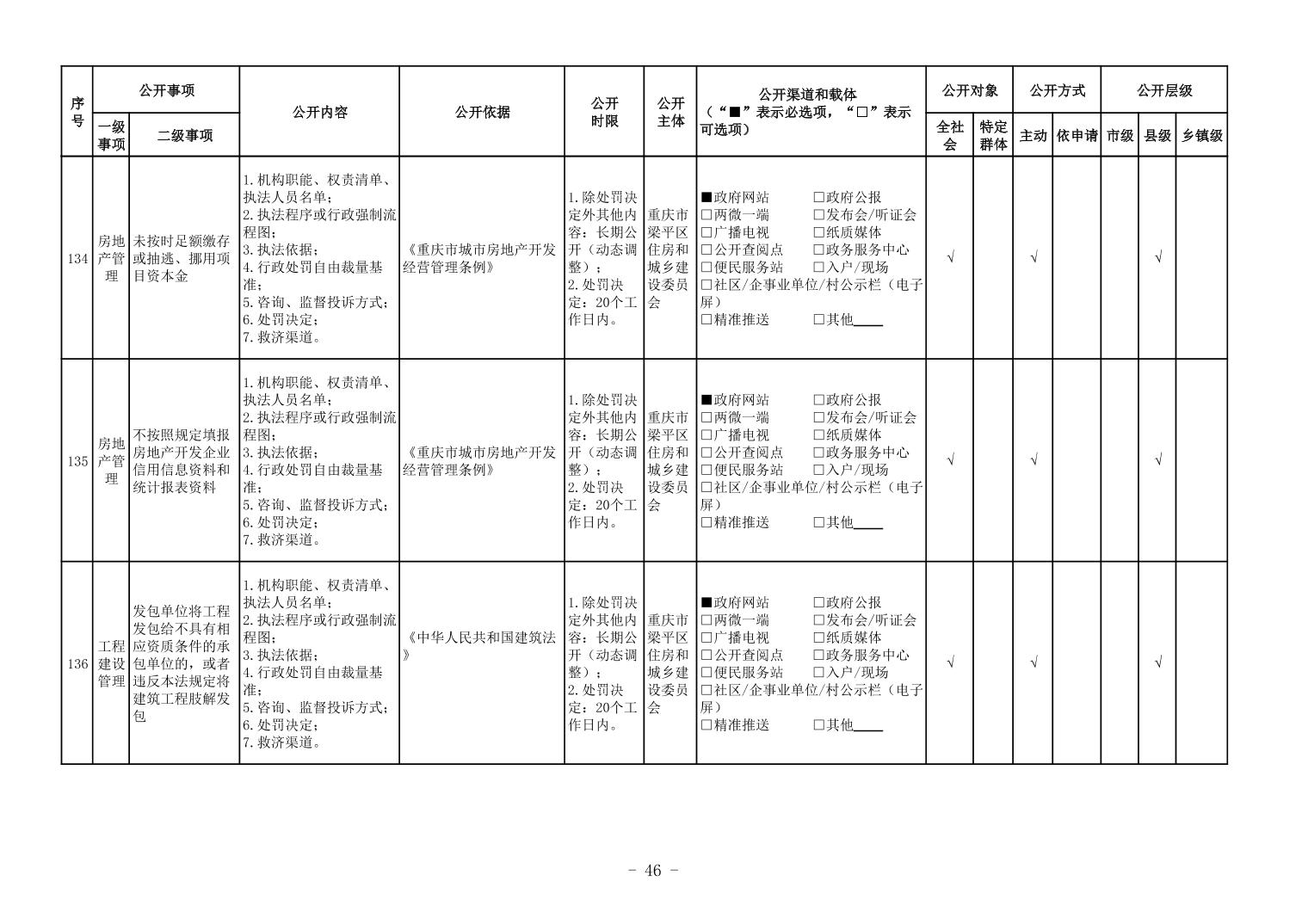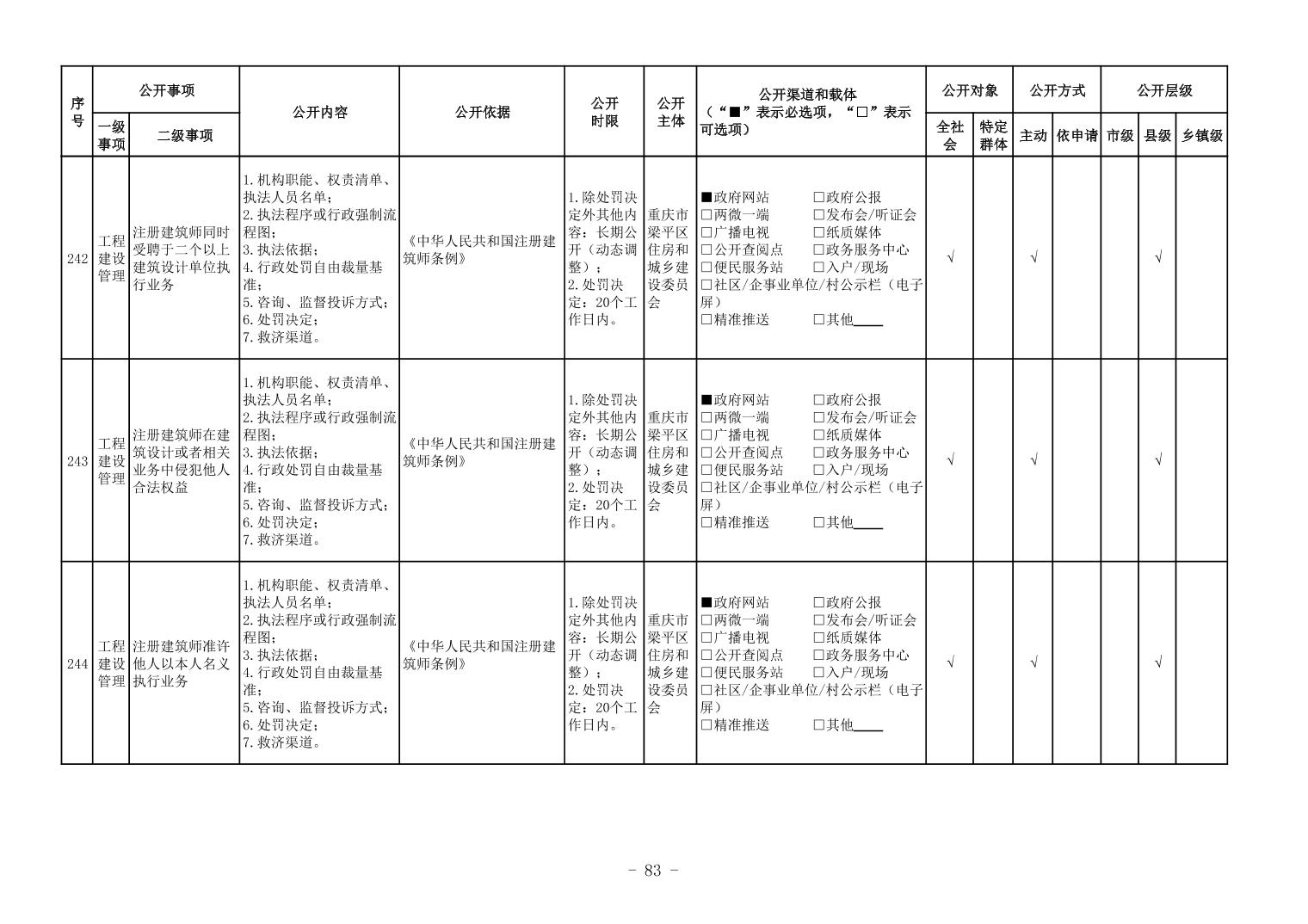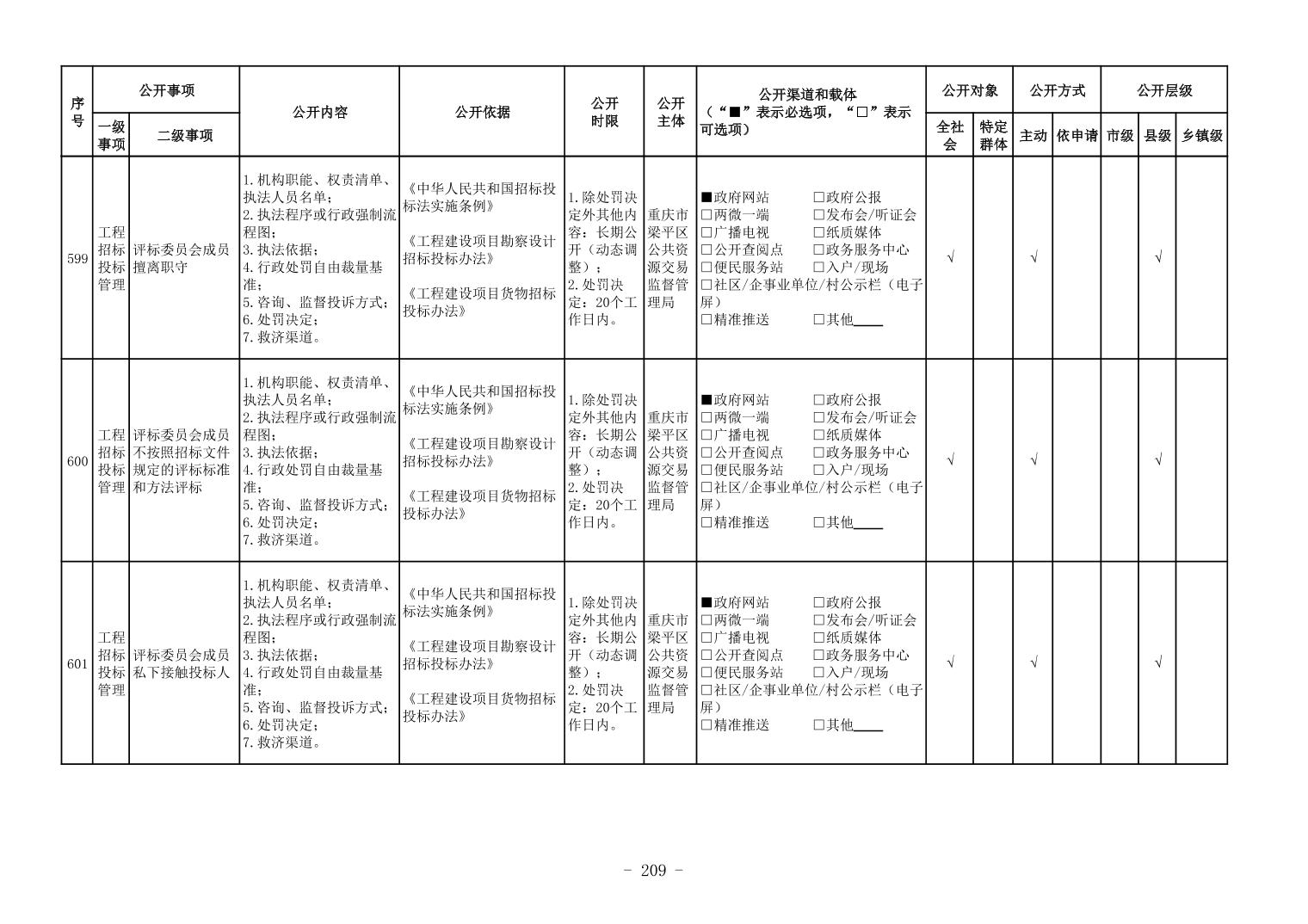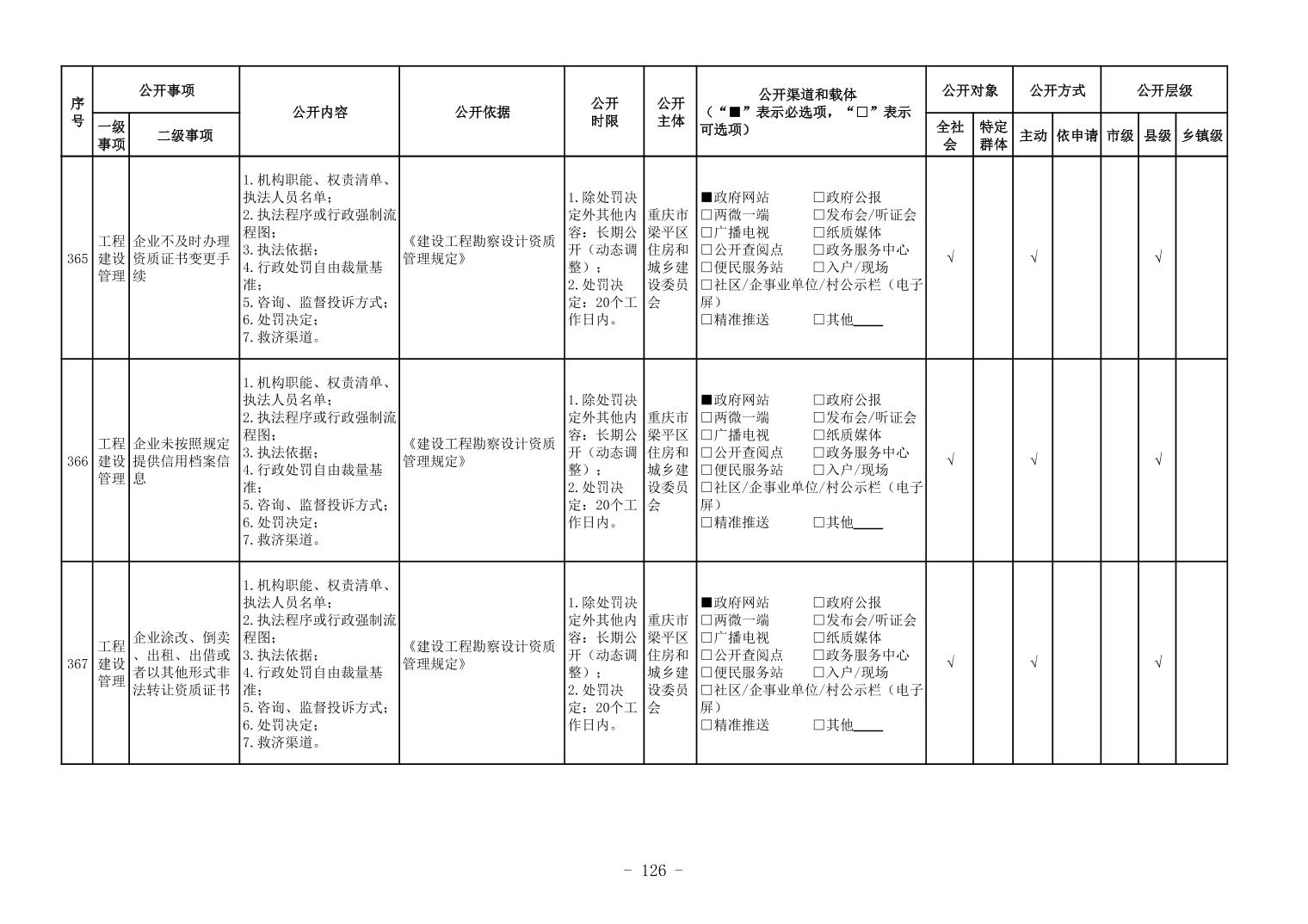 重慶市梁平區城市綜合執法領域基層政務公開標準目錄