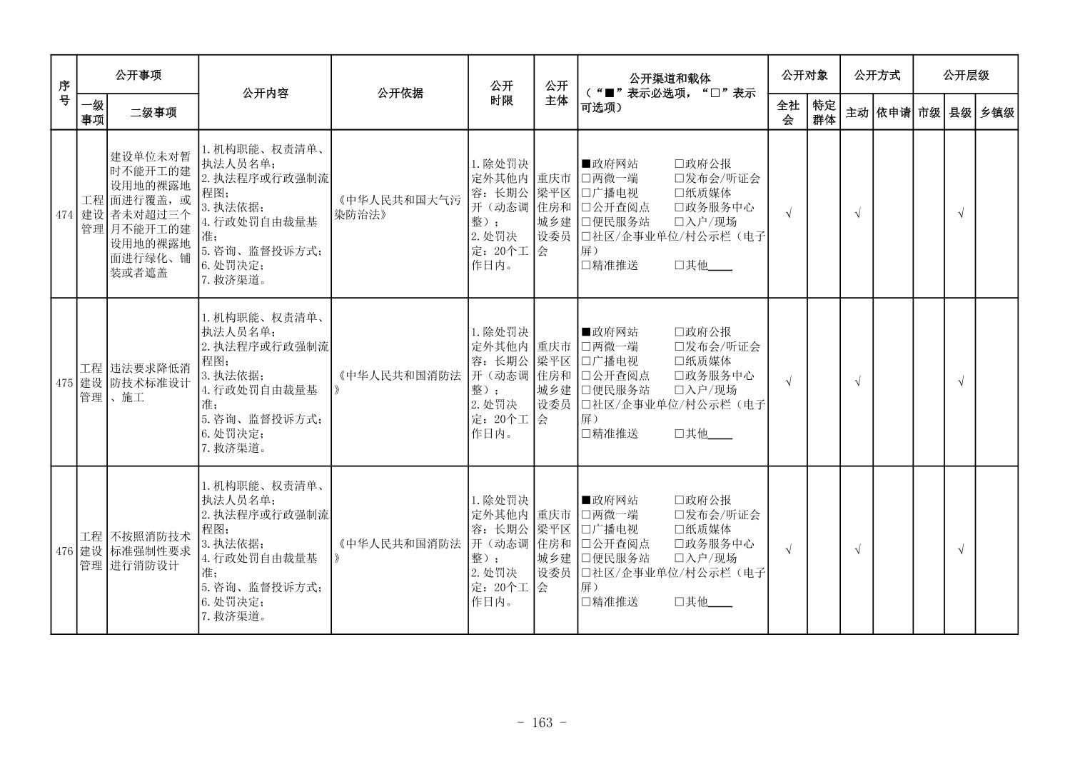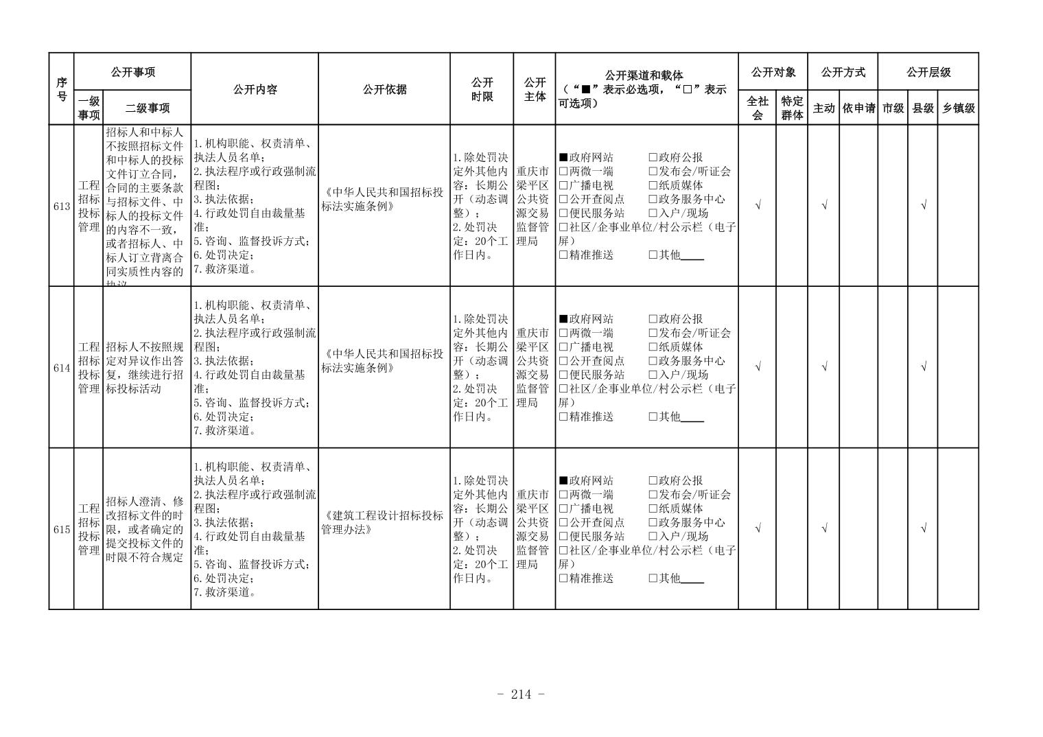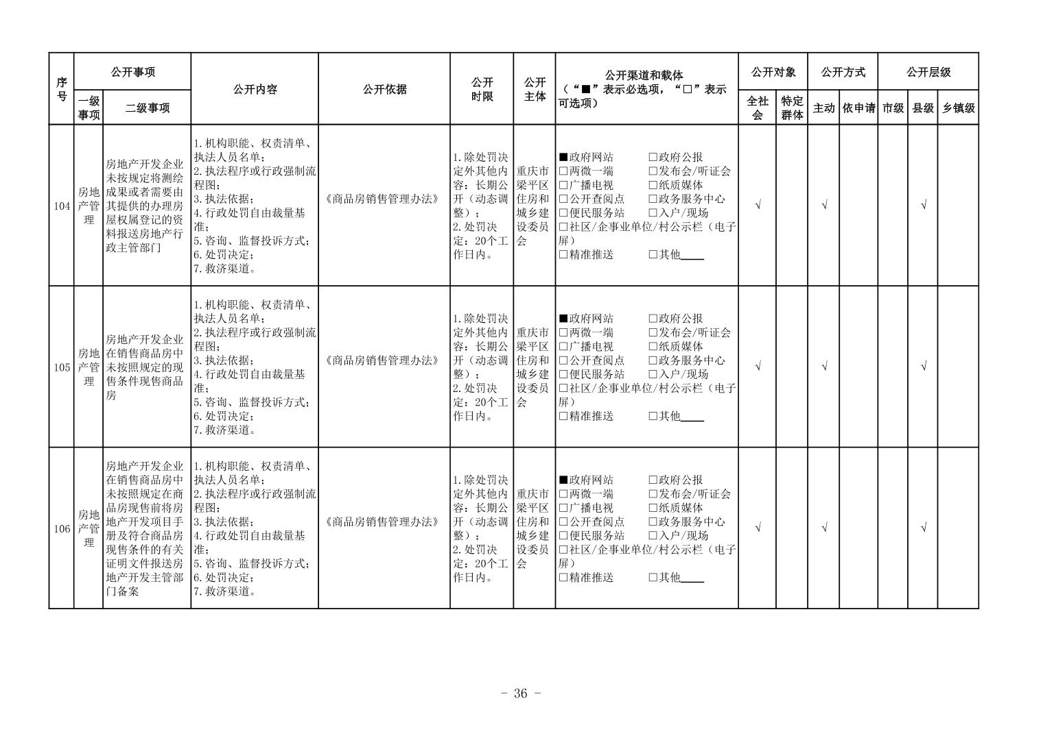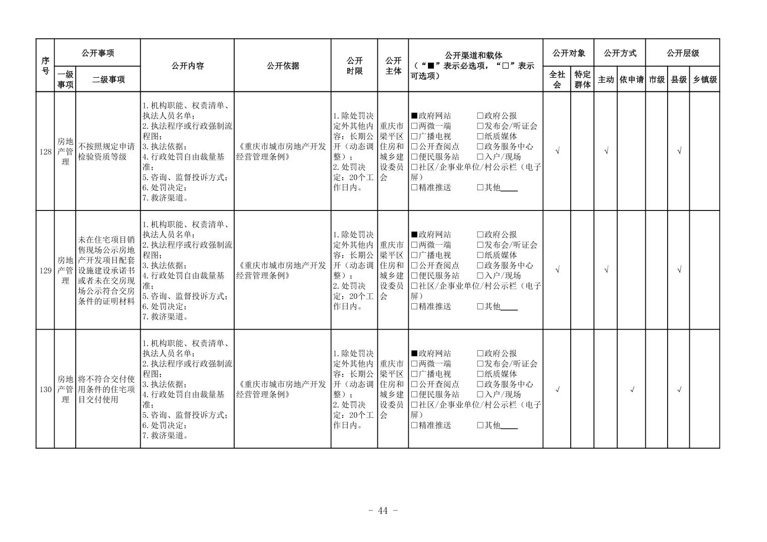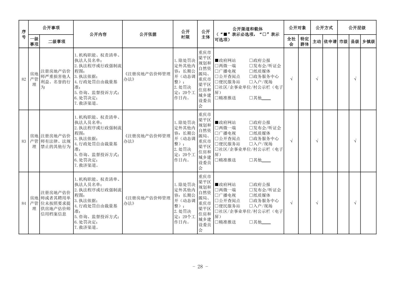 重慶市梁平區城市綜合執法領域基層政務公開標準目錄