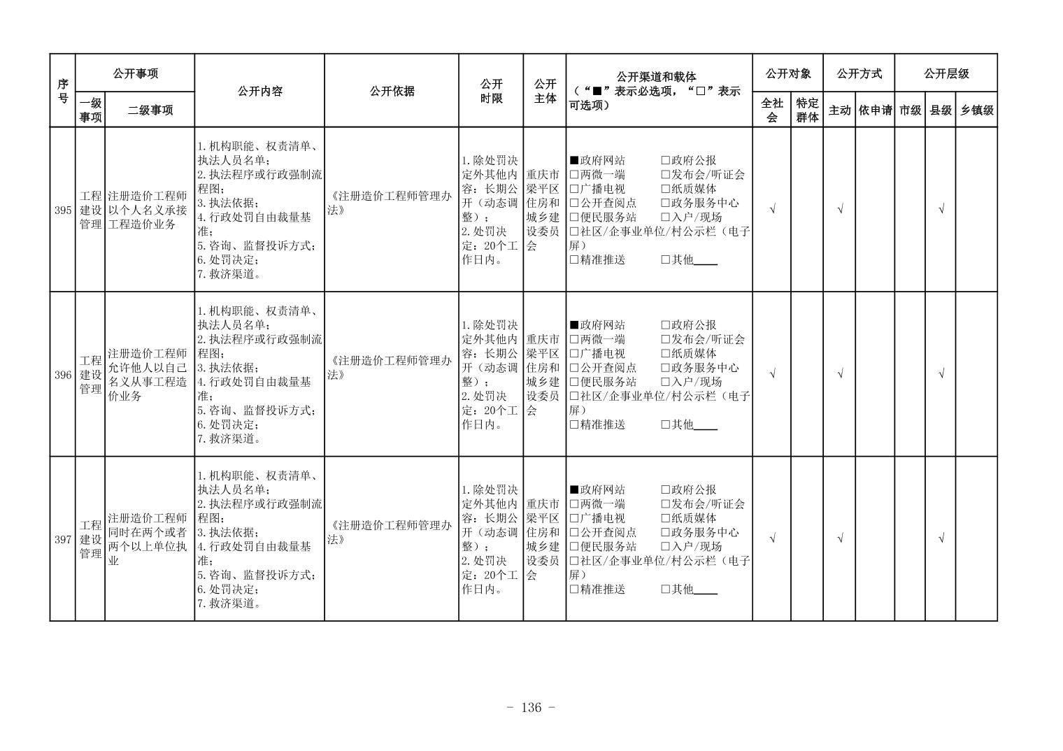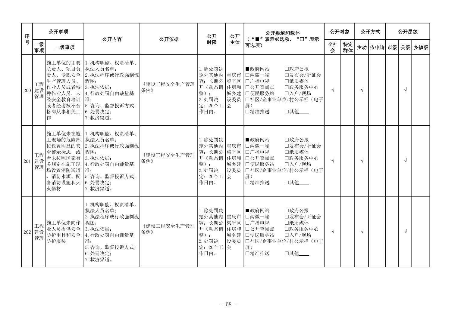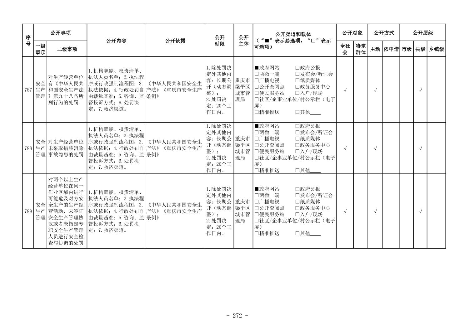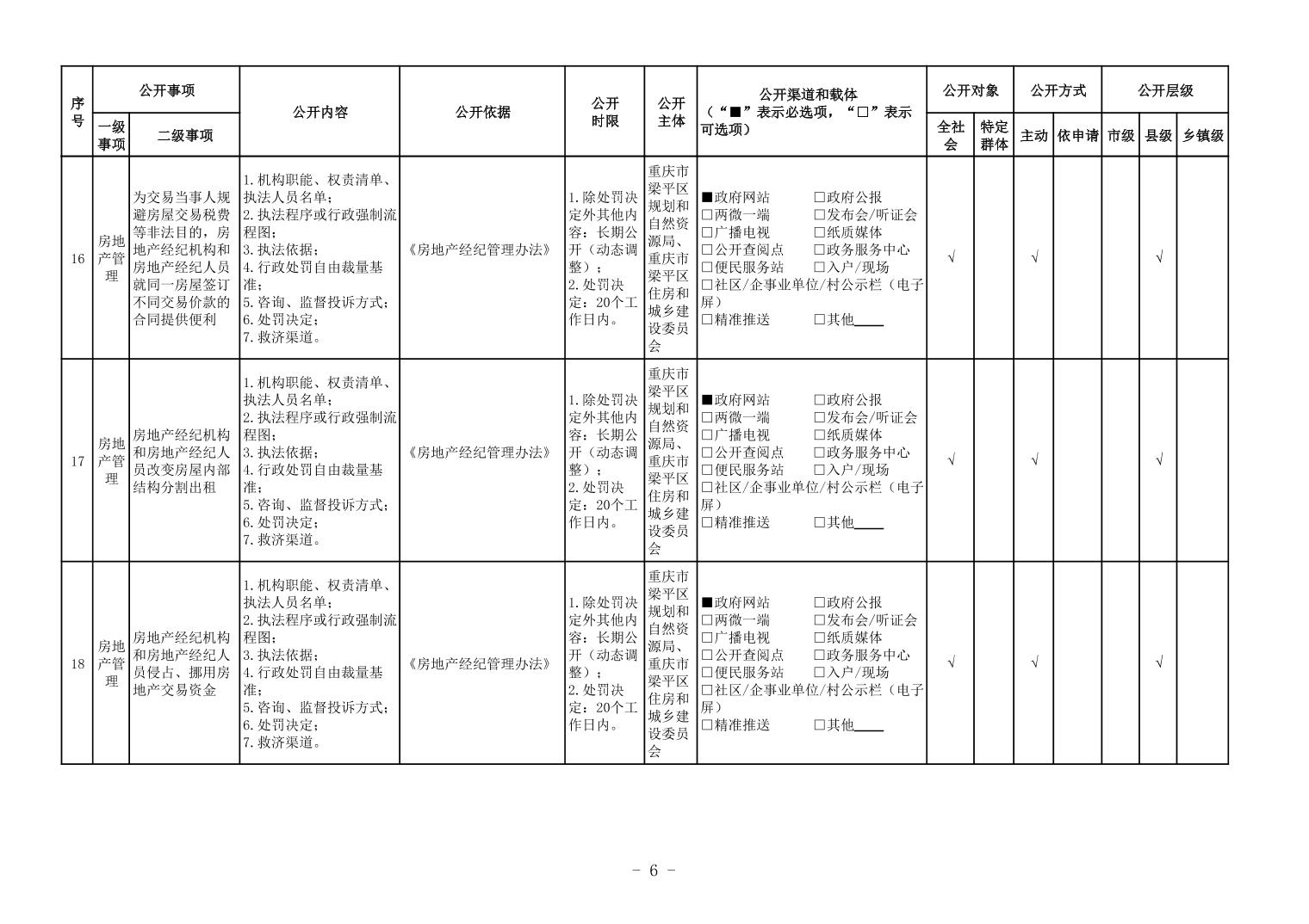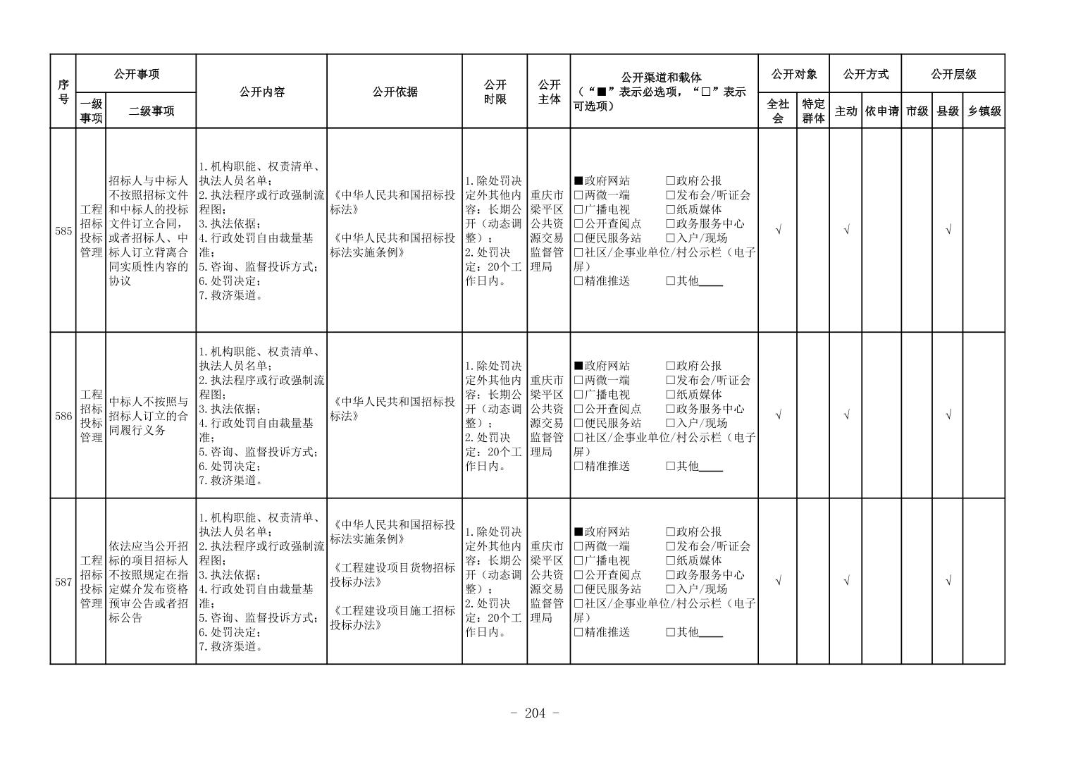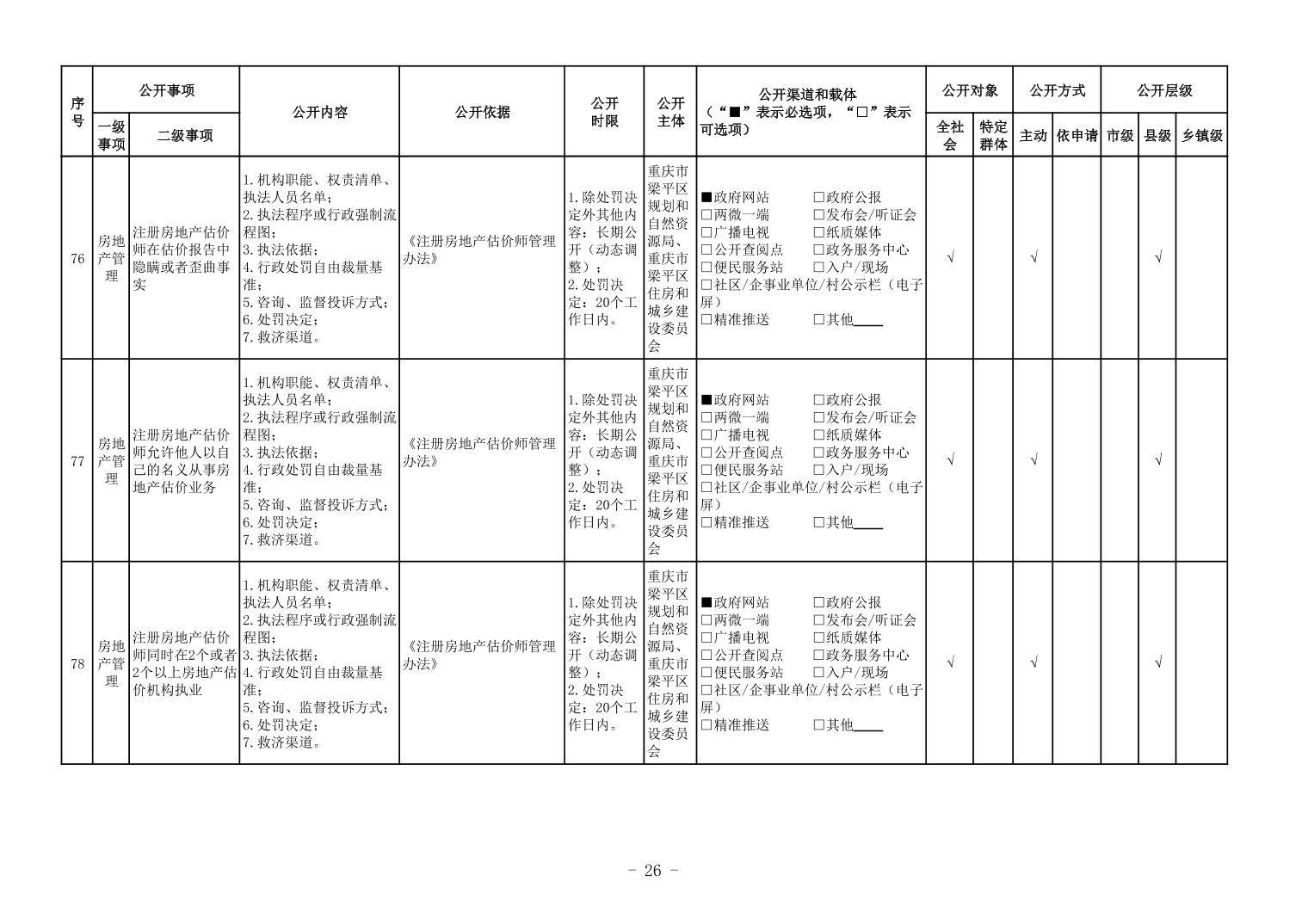 重慶市梁平區城市綜合執法領域基層政務公開標準目錄