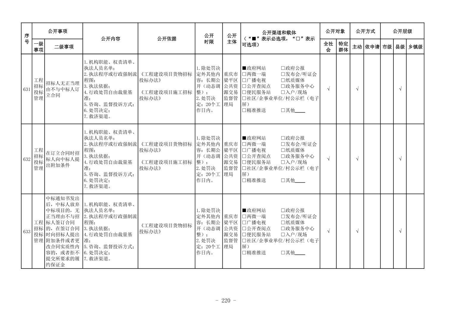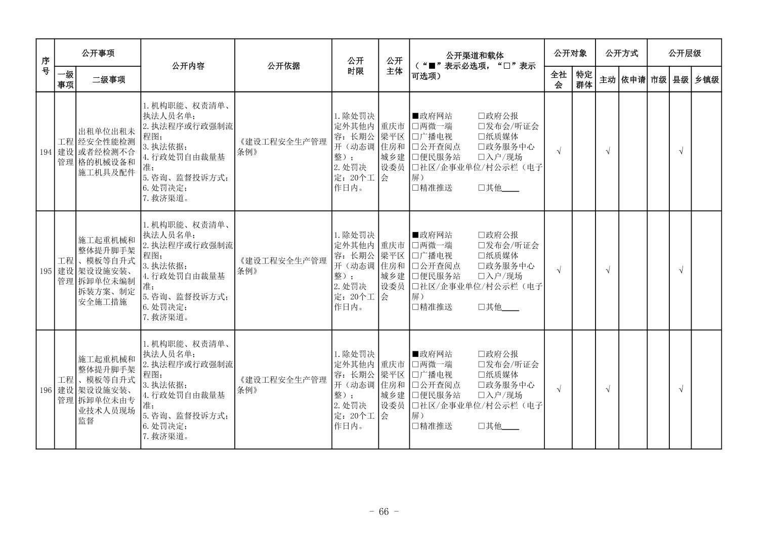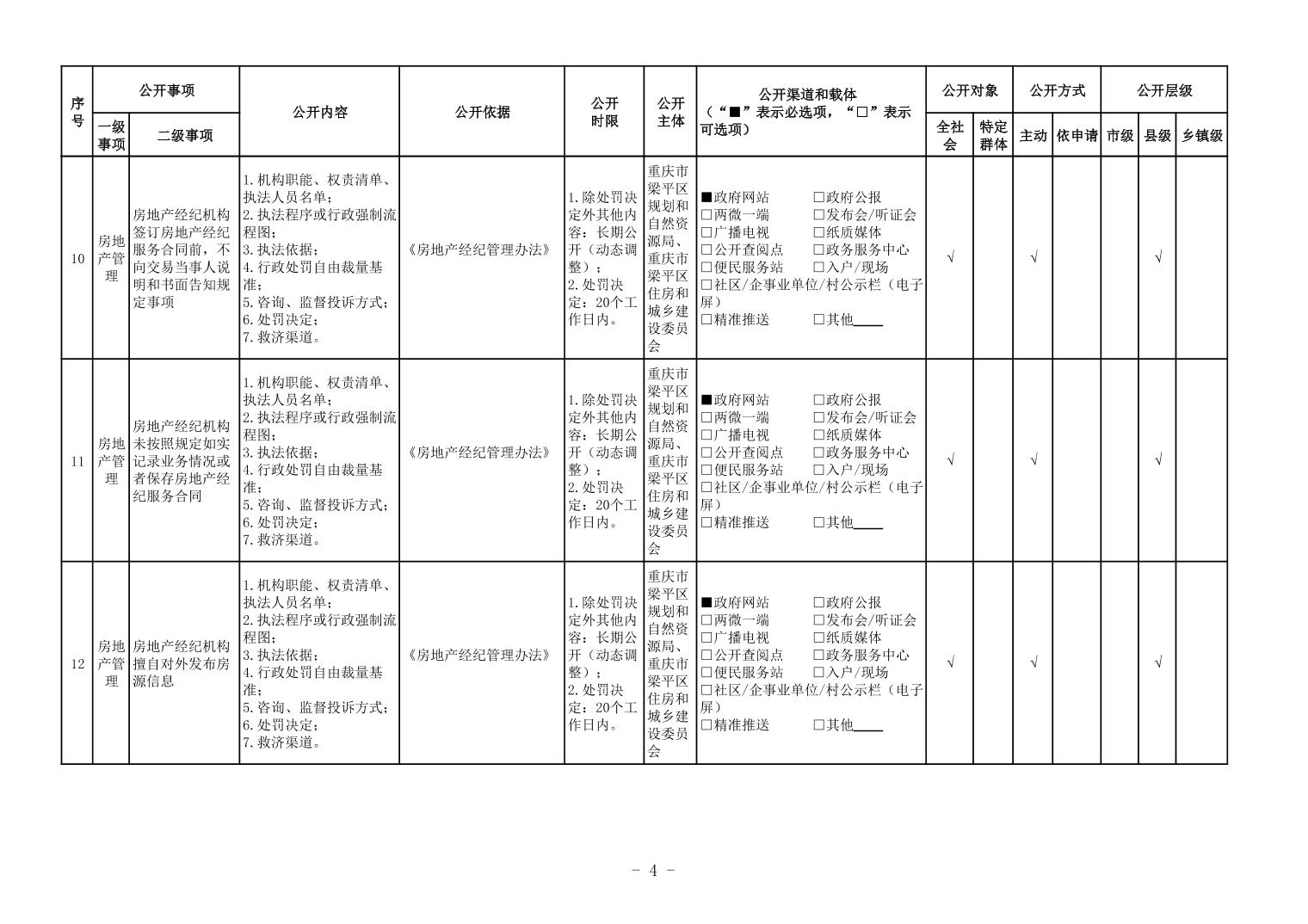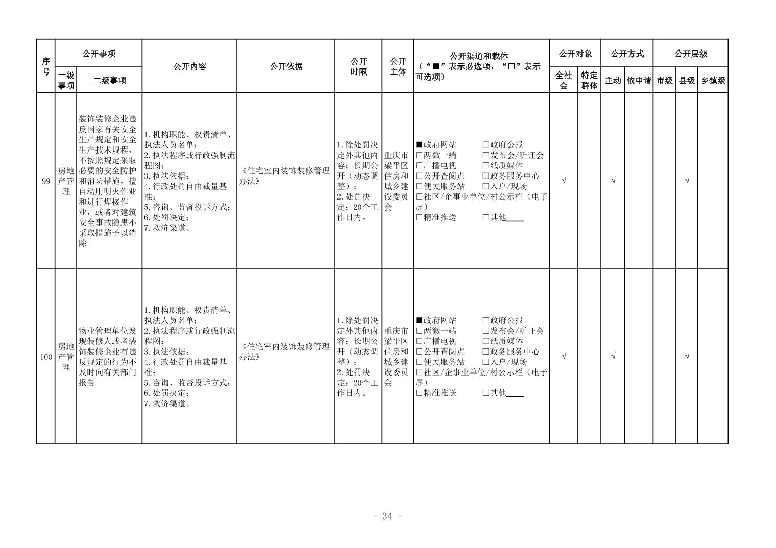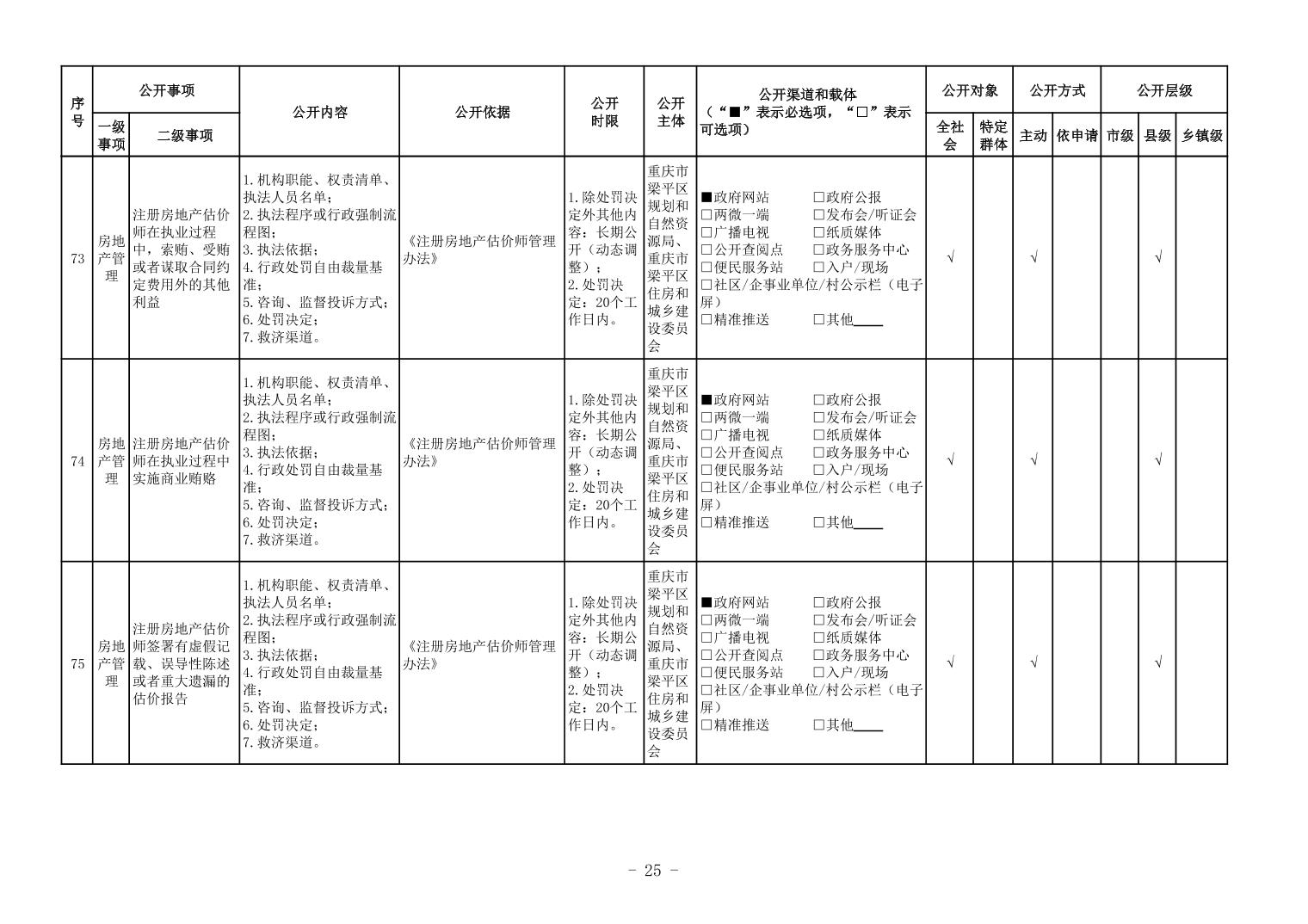重慶市梁平區城市綜合執法領域基層政務公開標準目錄