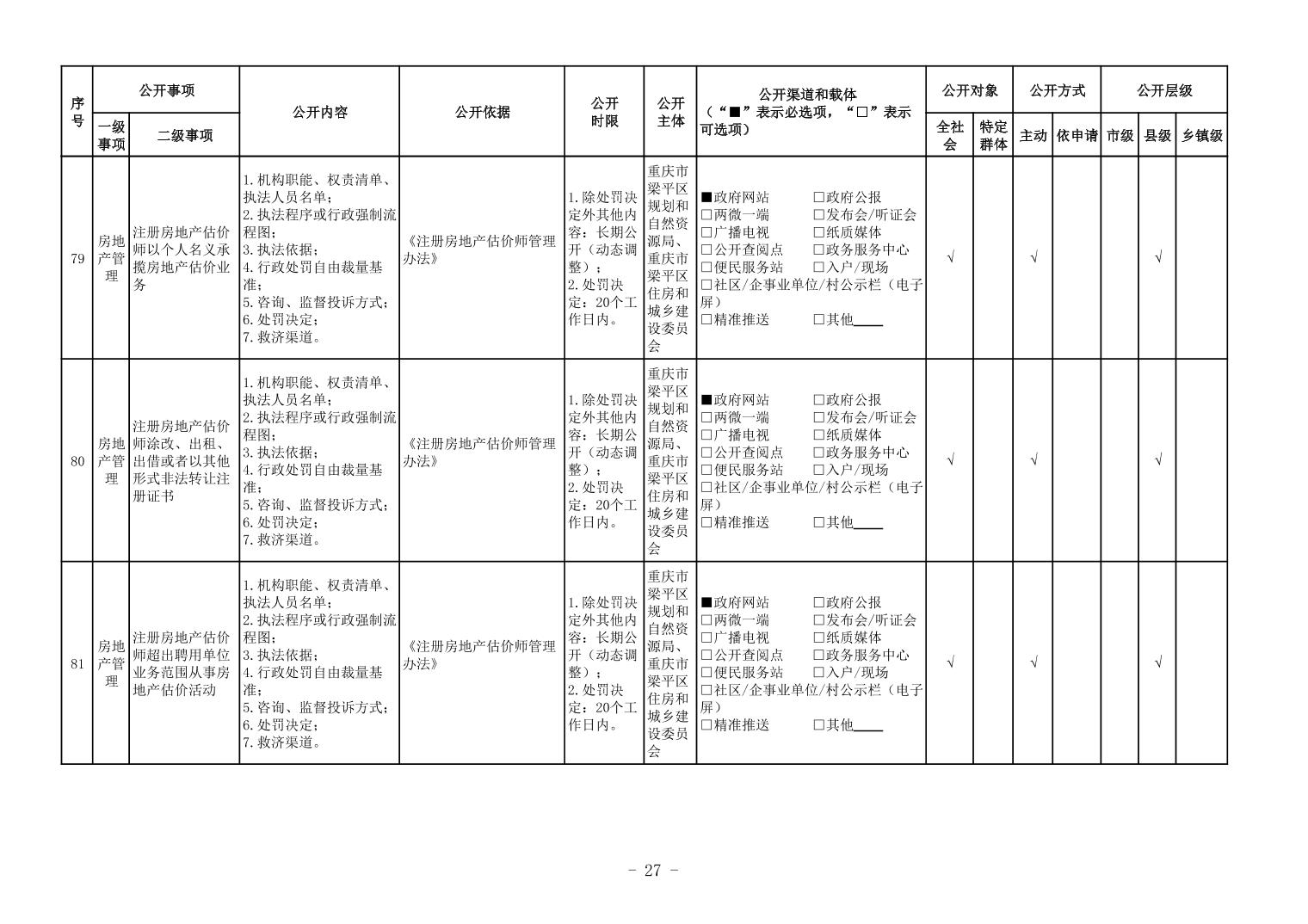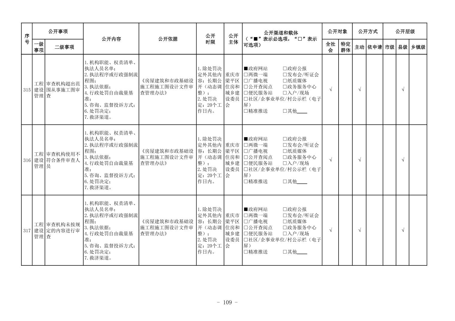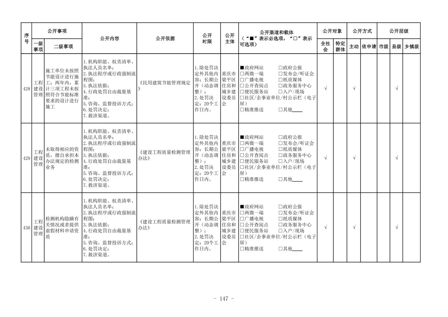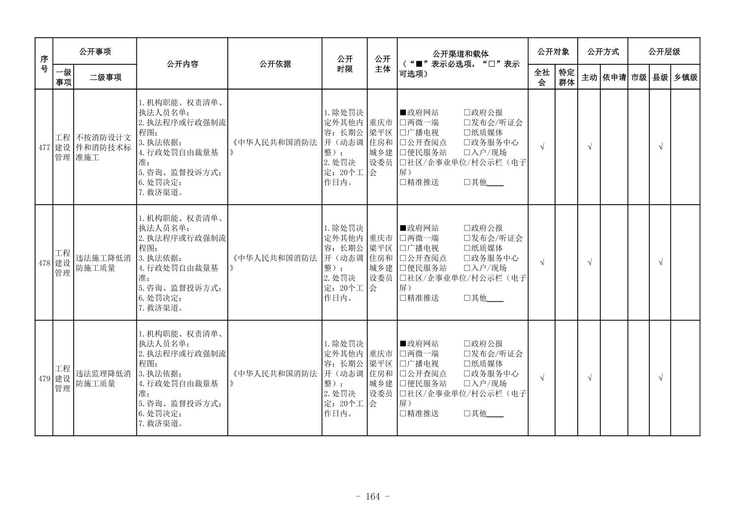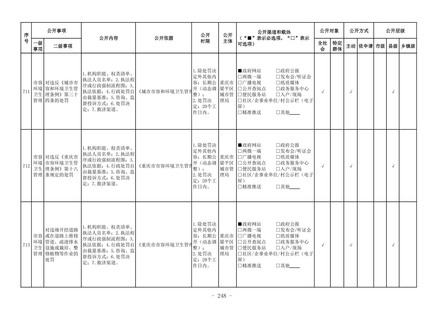 重慶市梁平區城市綜合執法領域基層政務公開標準目錄