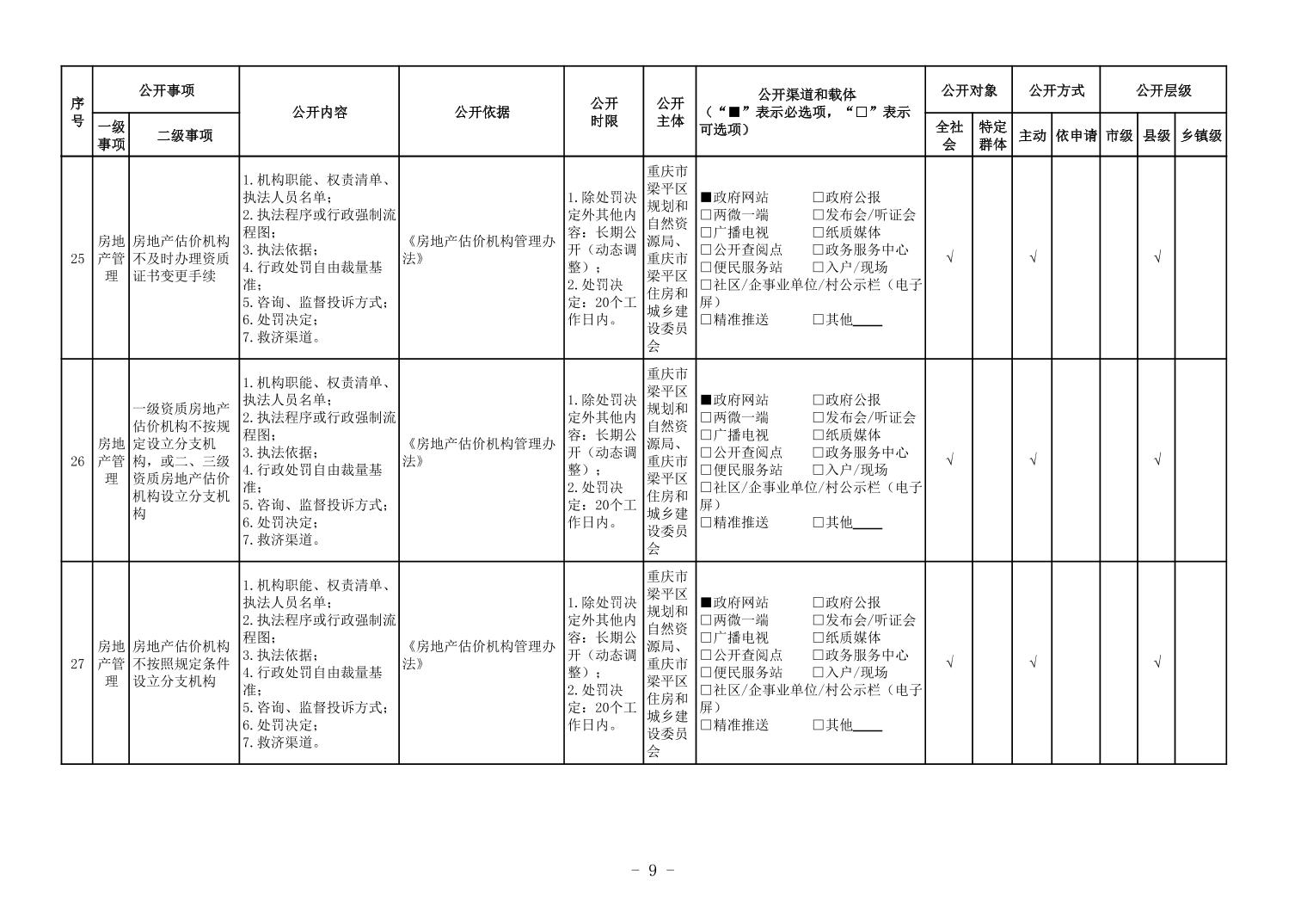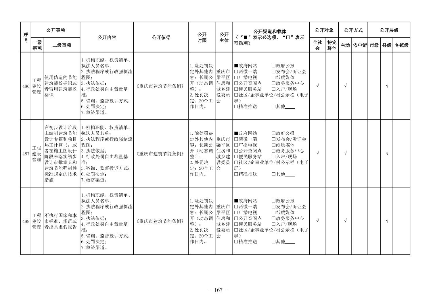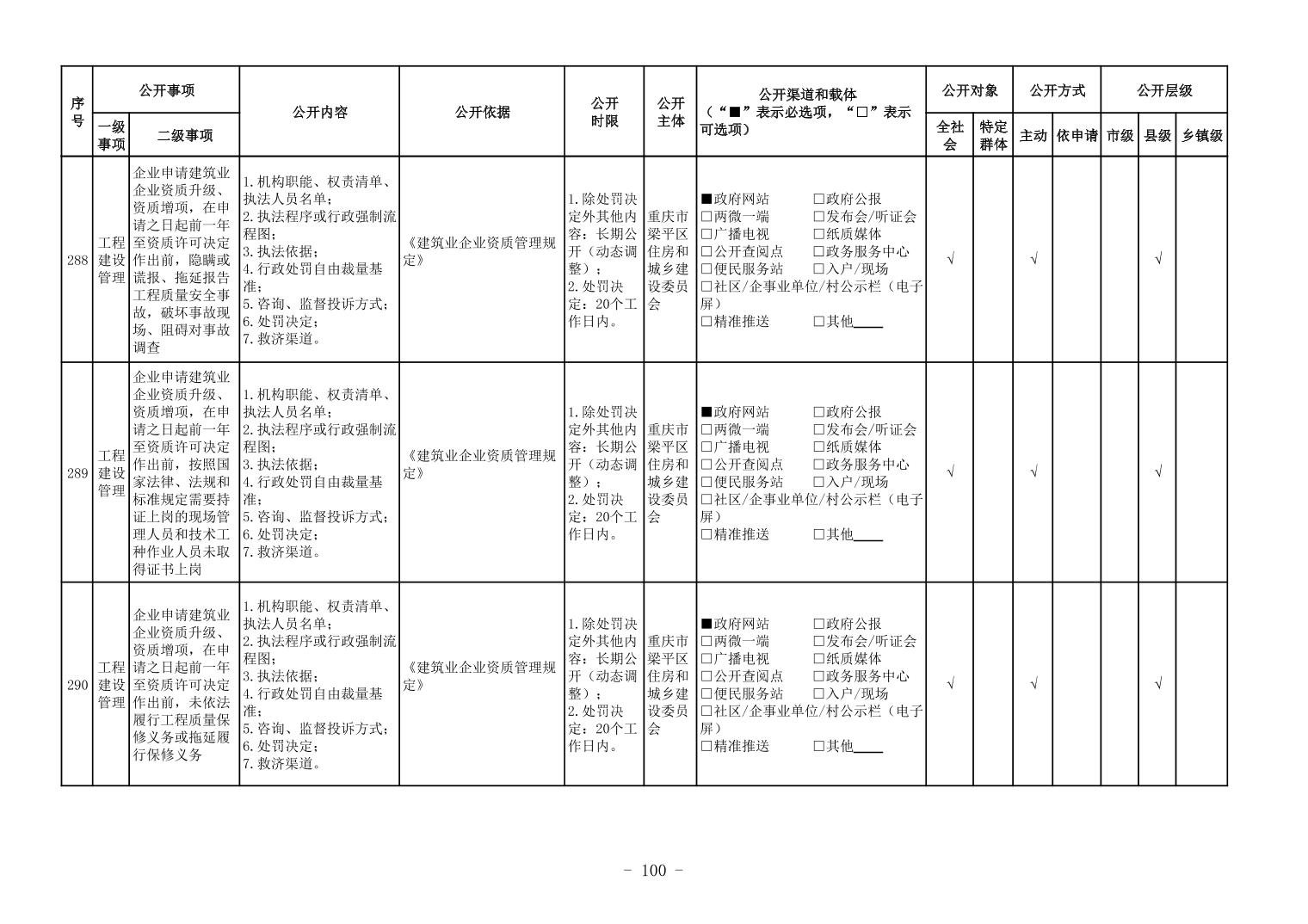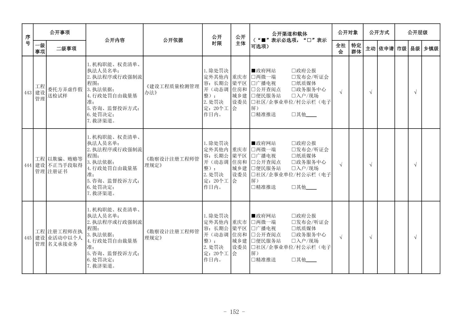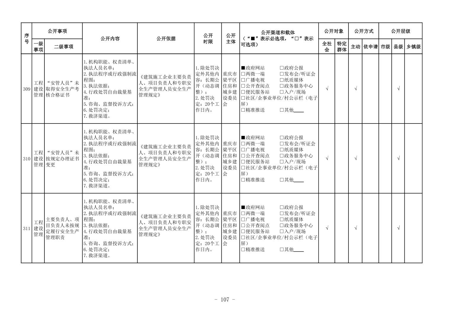重慶市梁平區城市綜合執法領域基層政務公開標準目錄