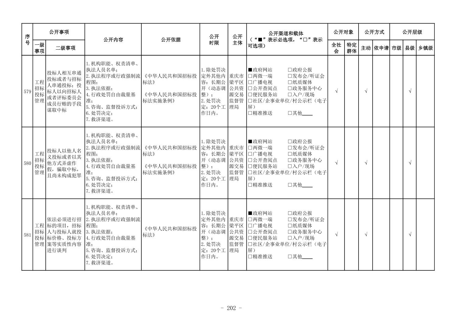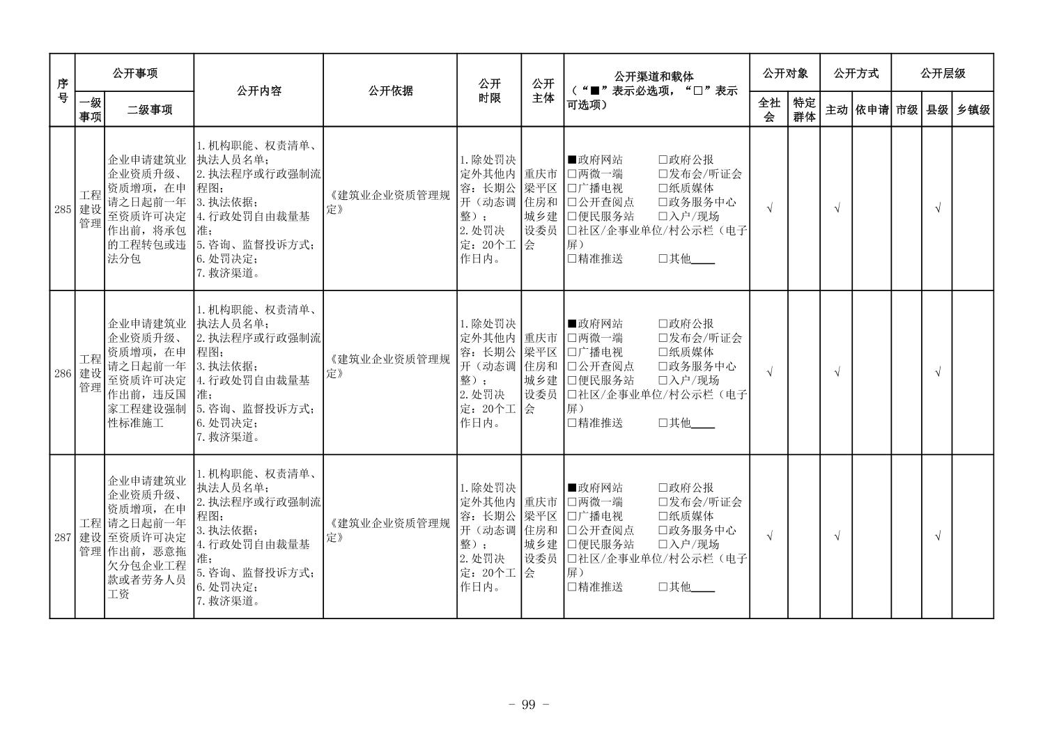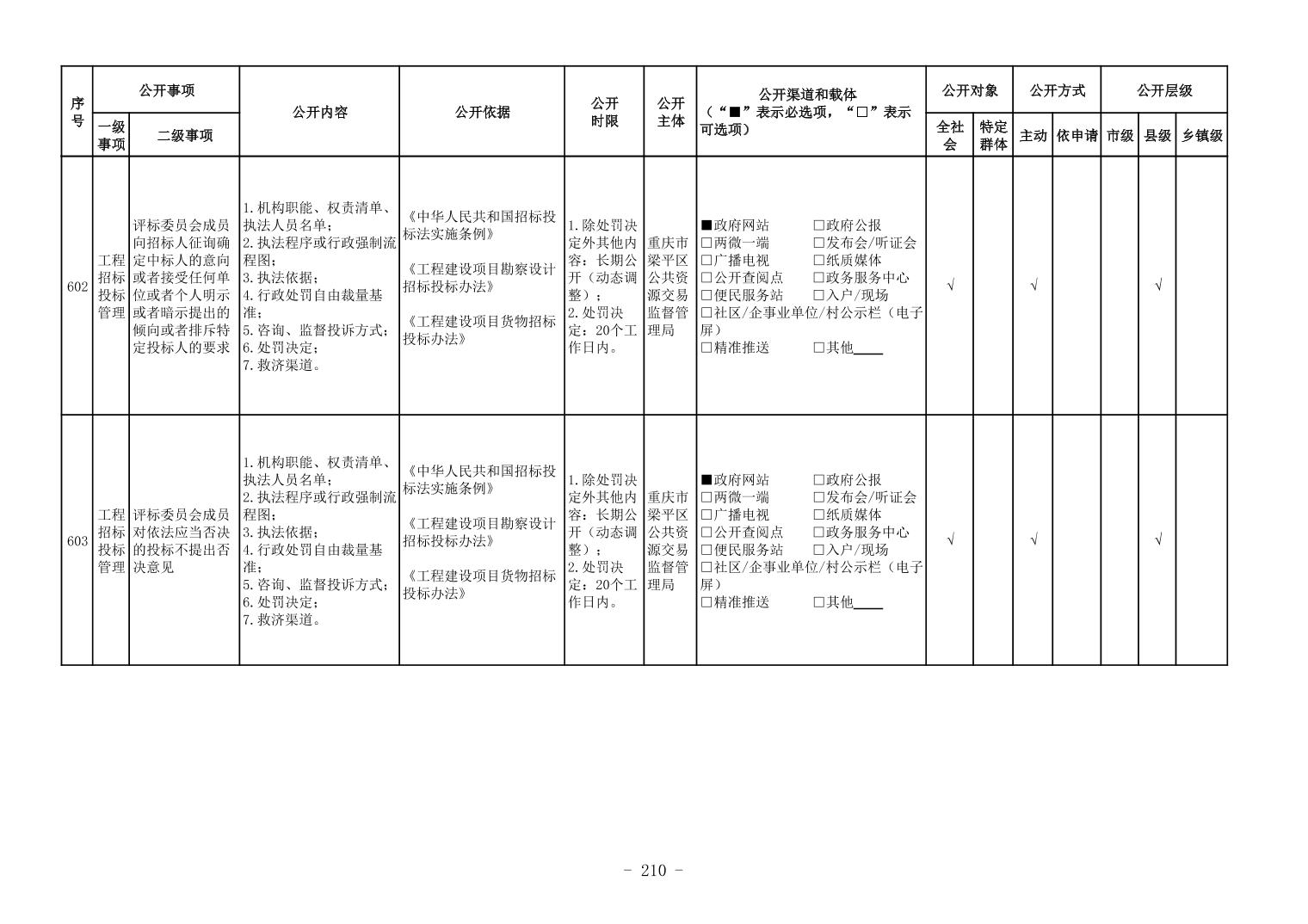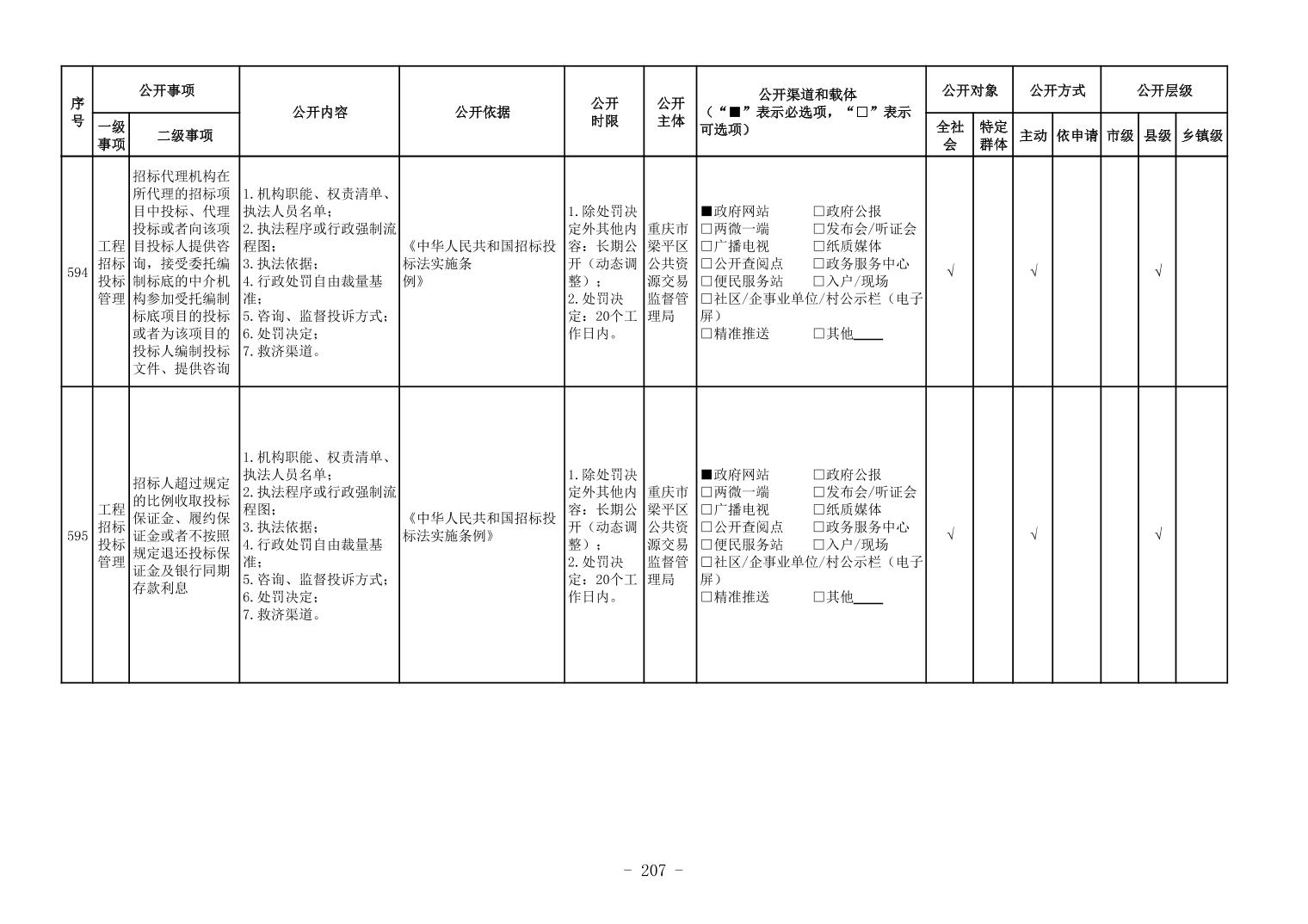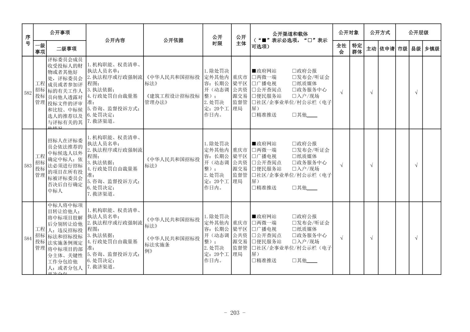 重慶市梁平區城市綜合執法領域基層政務公開標準目錄