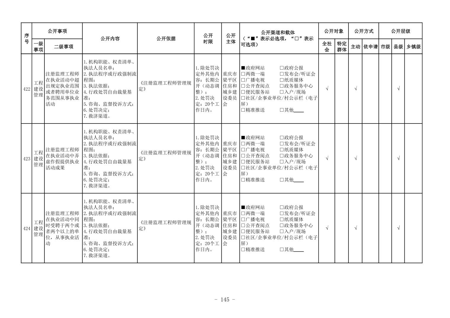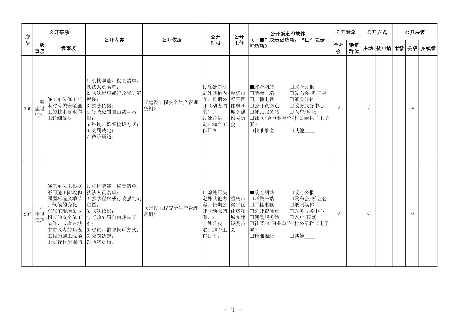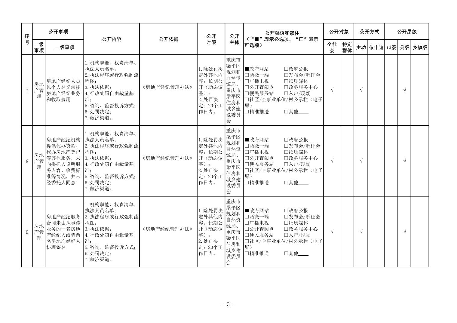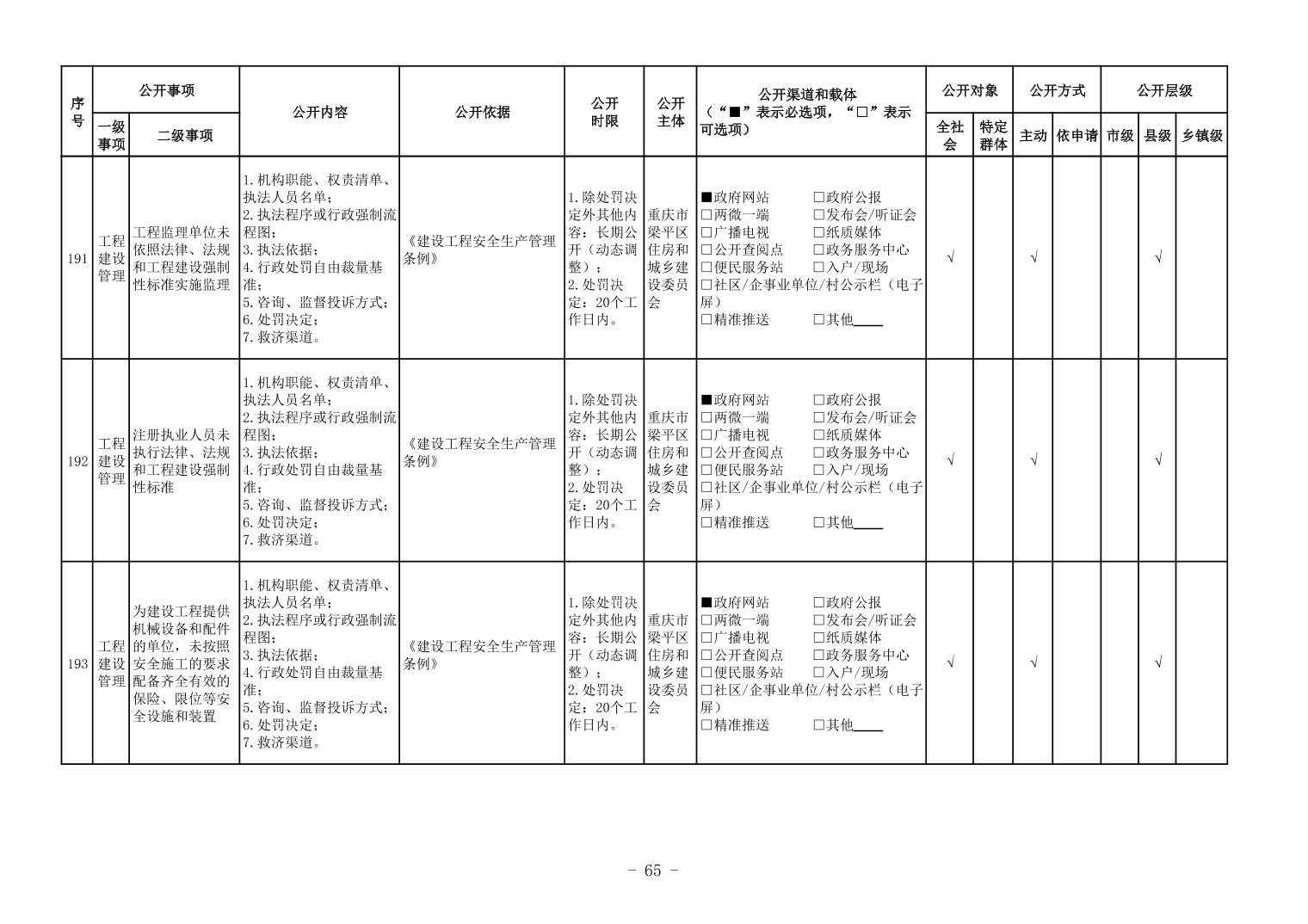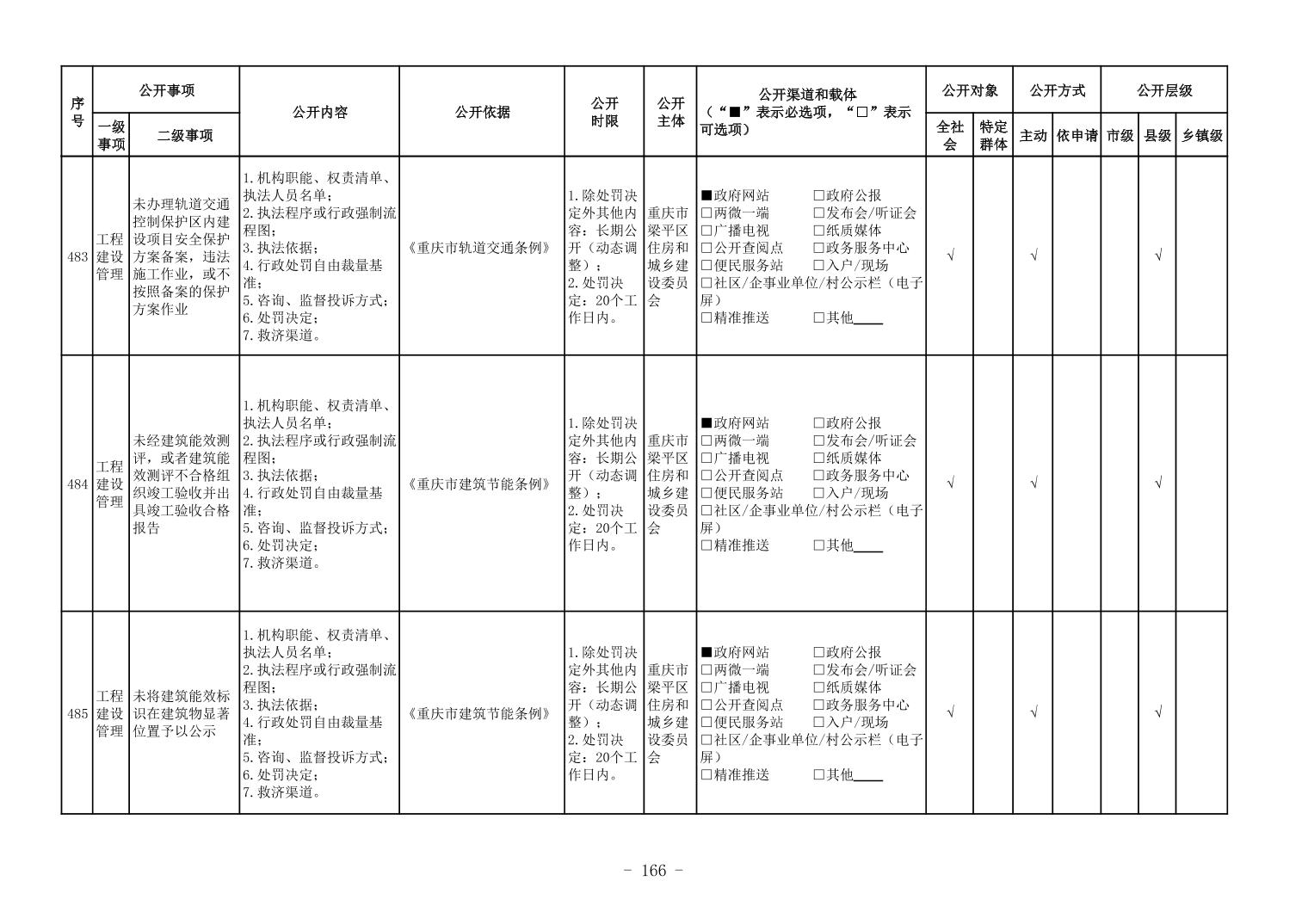 重慶市梁平區城市綜合執法領域基層政務公開標準目錄