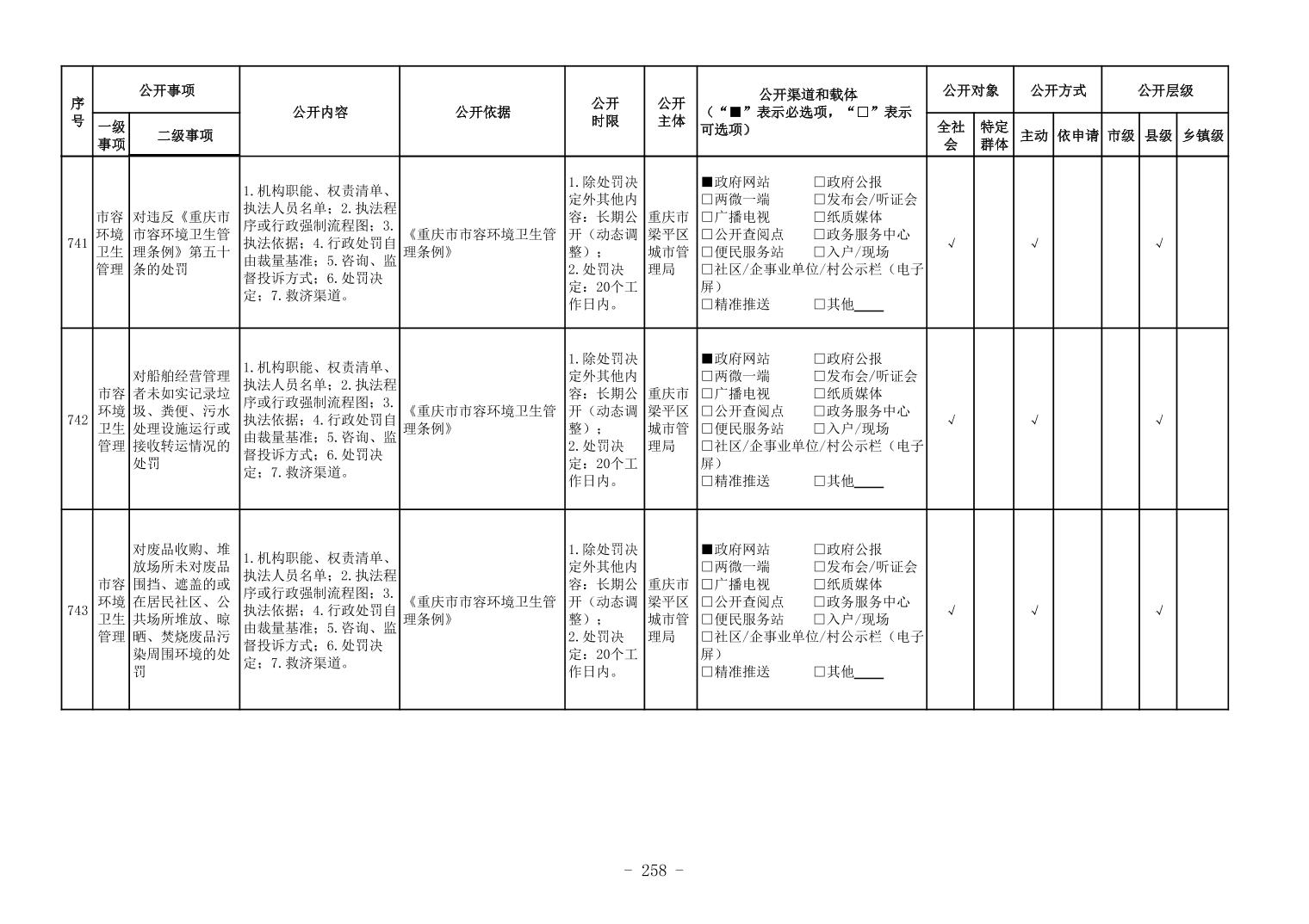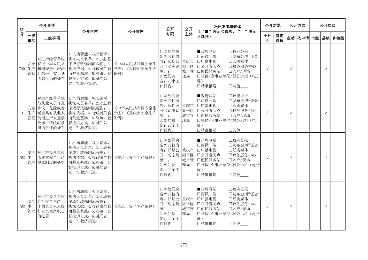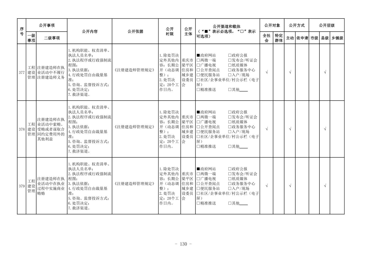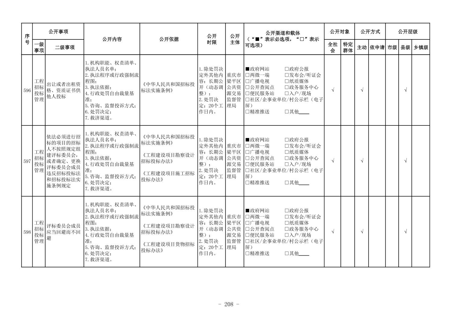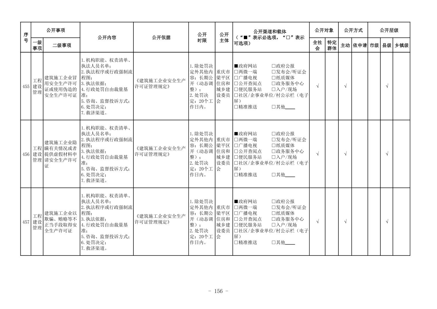 重慶市梁平區城市綜合執法領域基層政務公開標準目錄