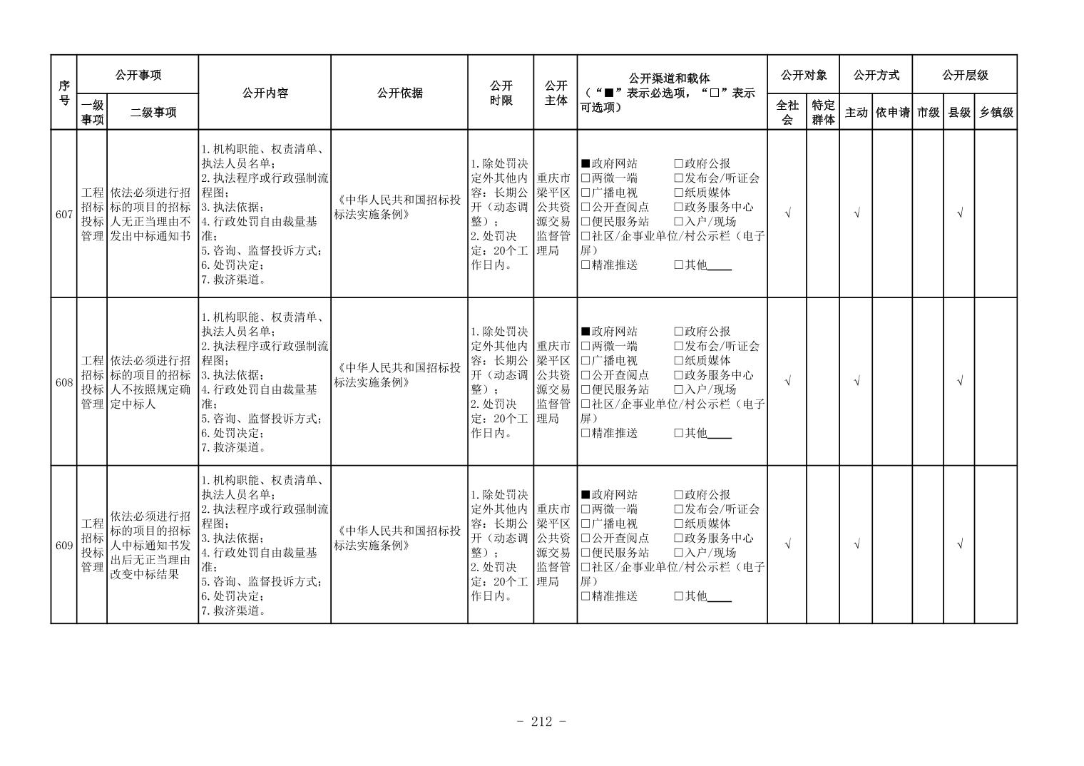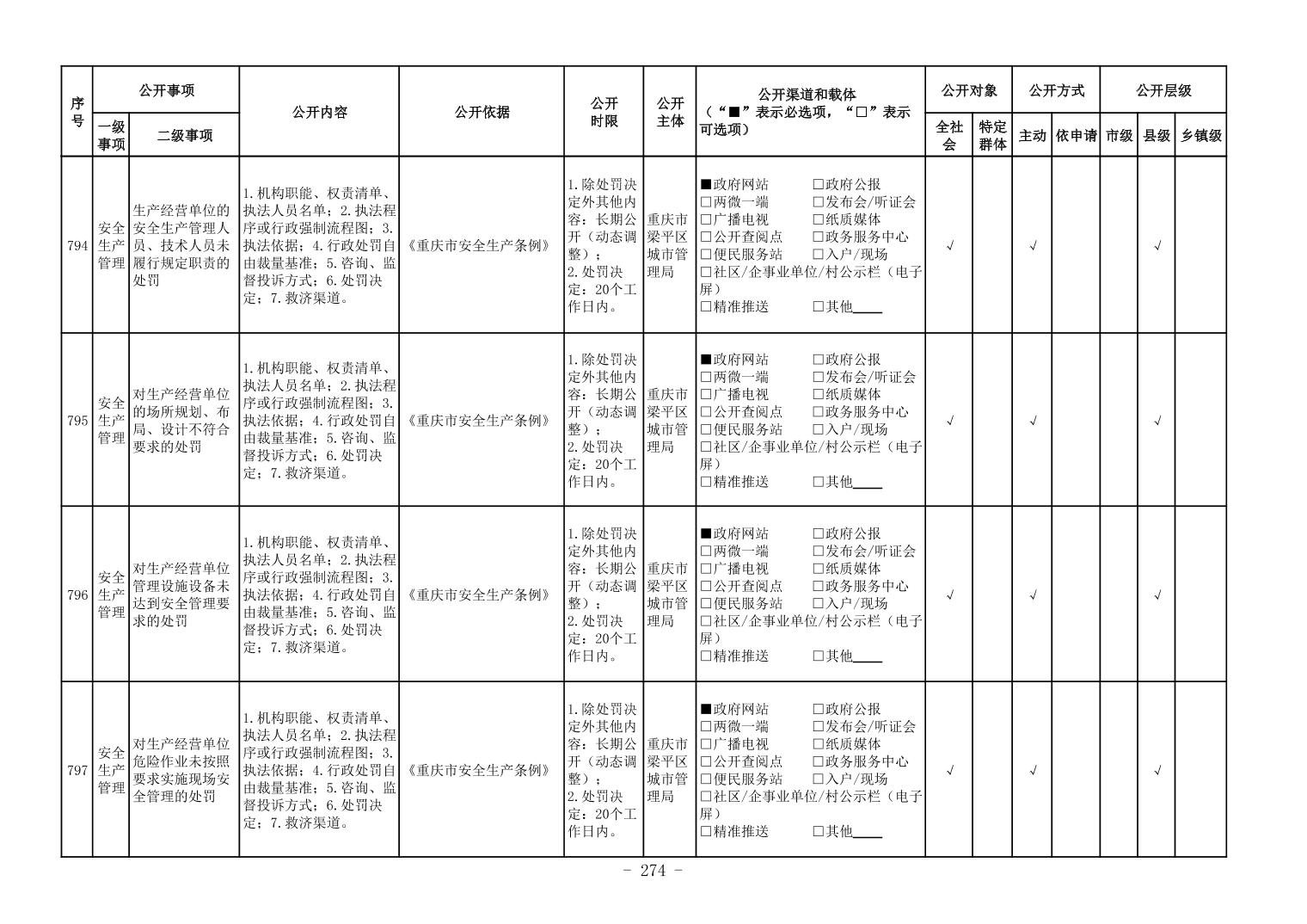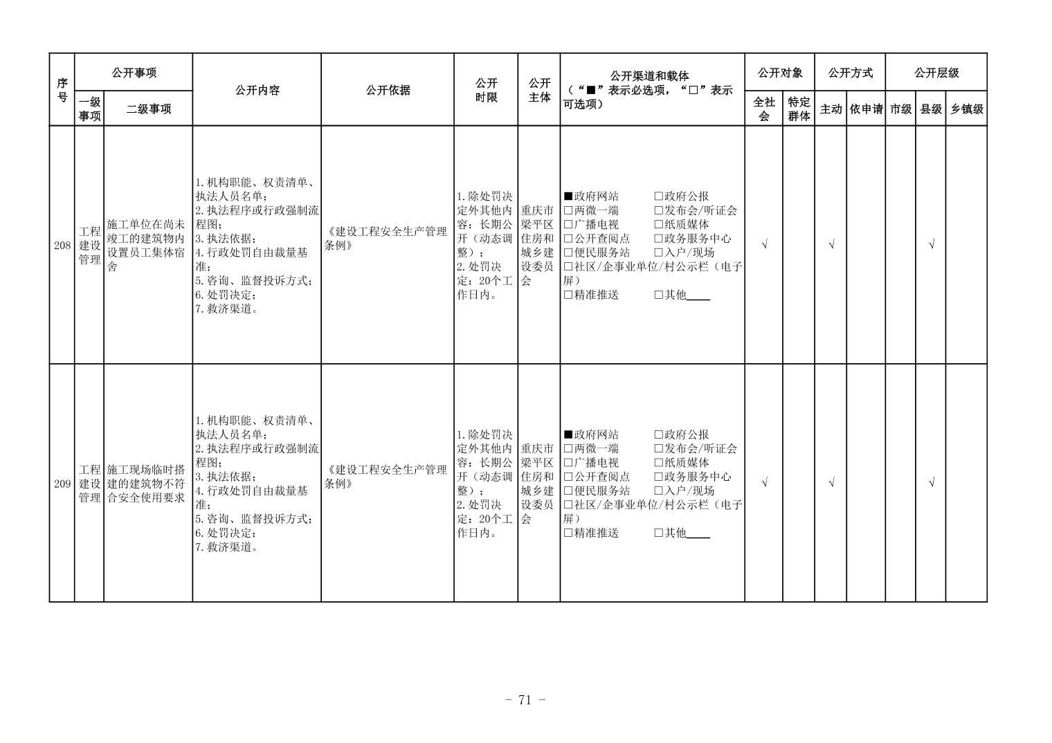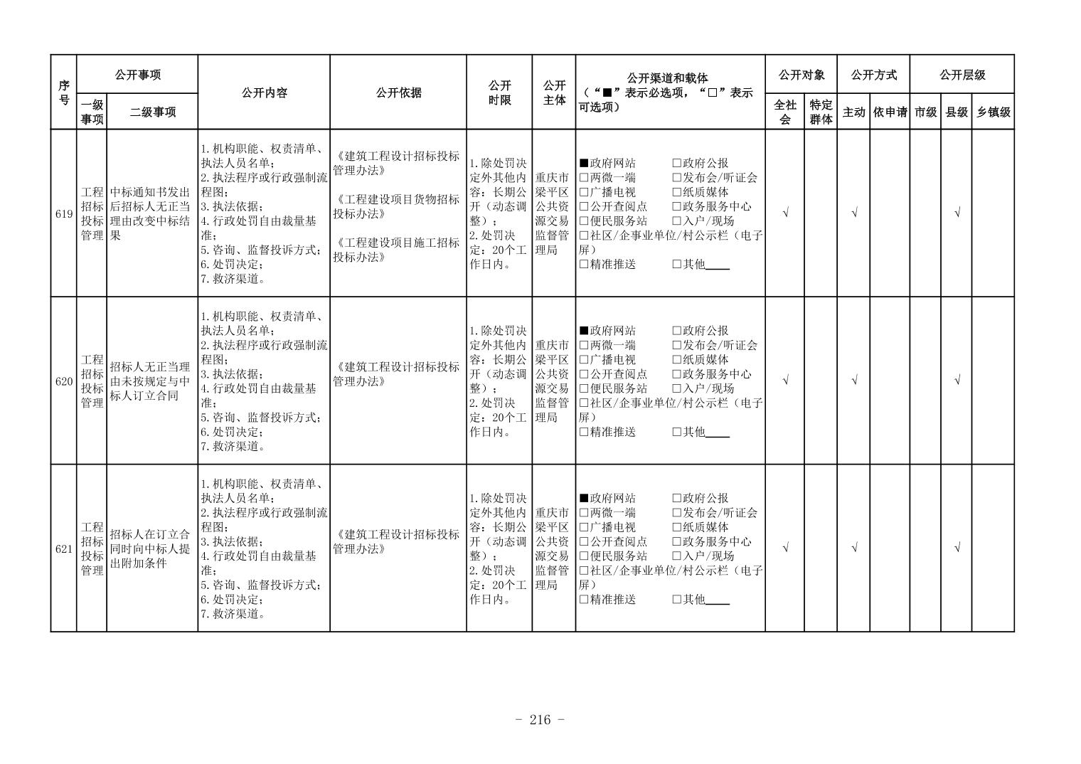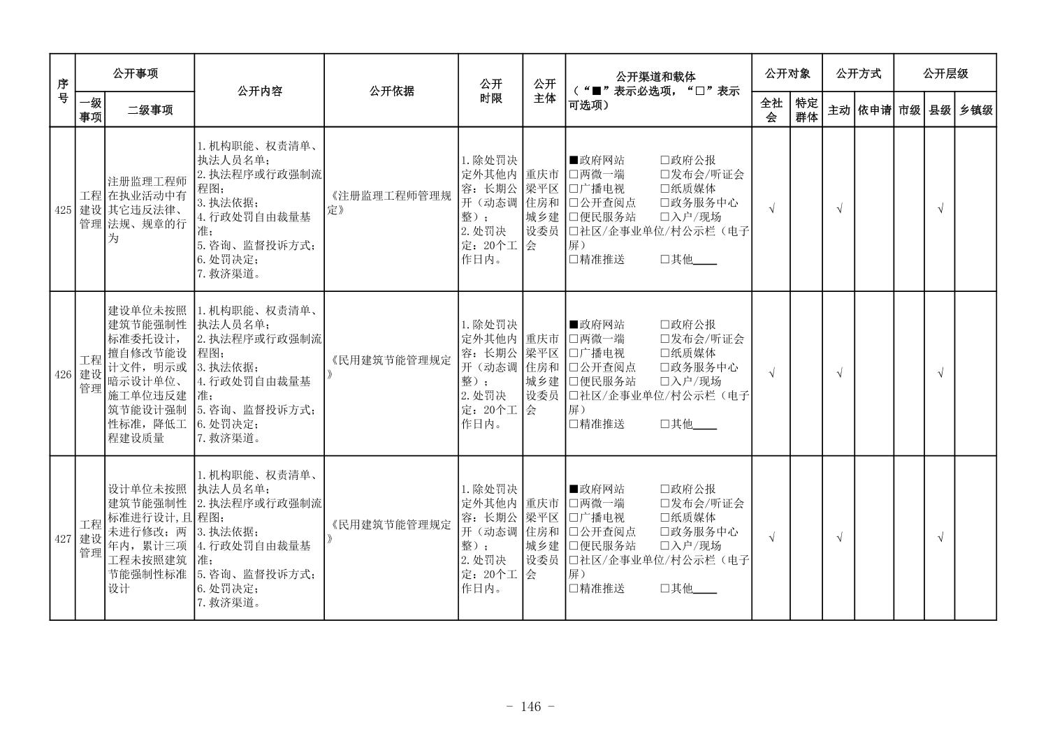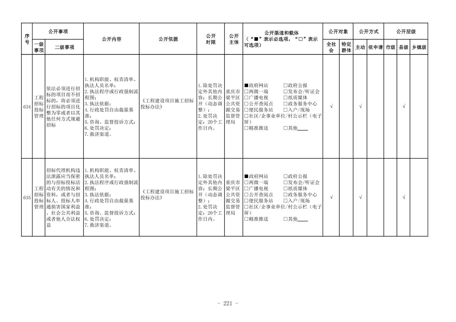 重慶市梁平區城市綜合執法領域基層政務公開標準目錄