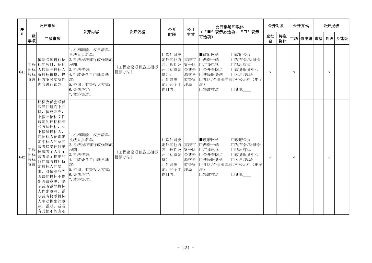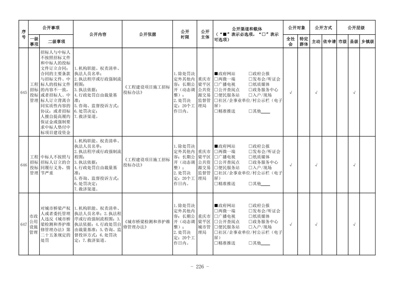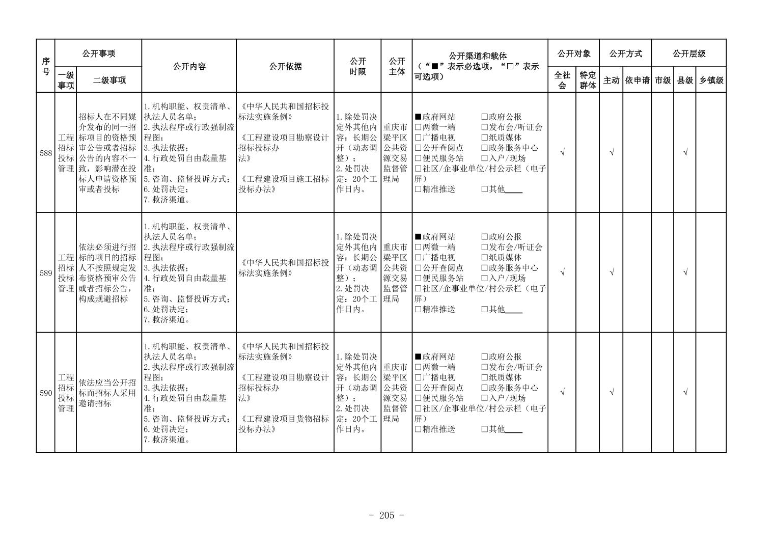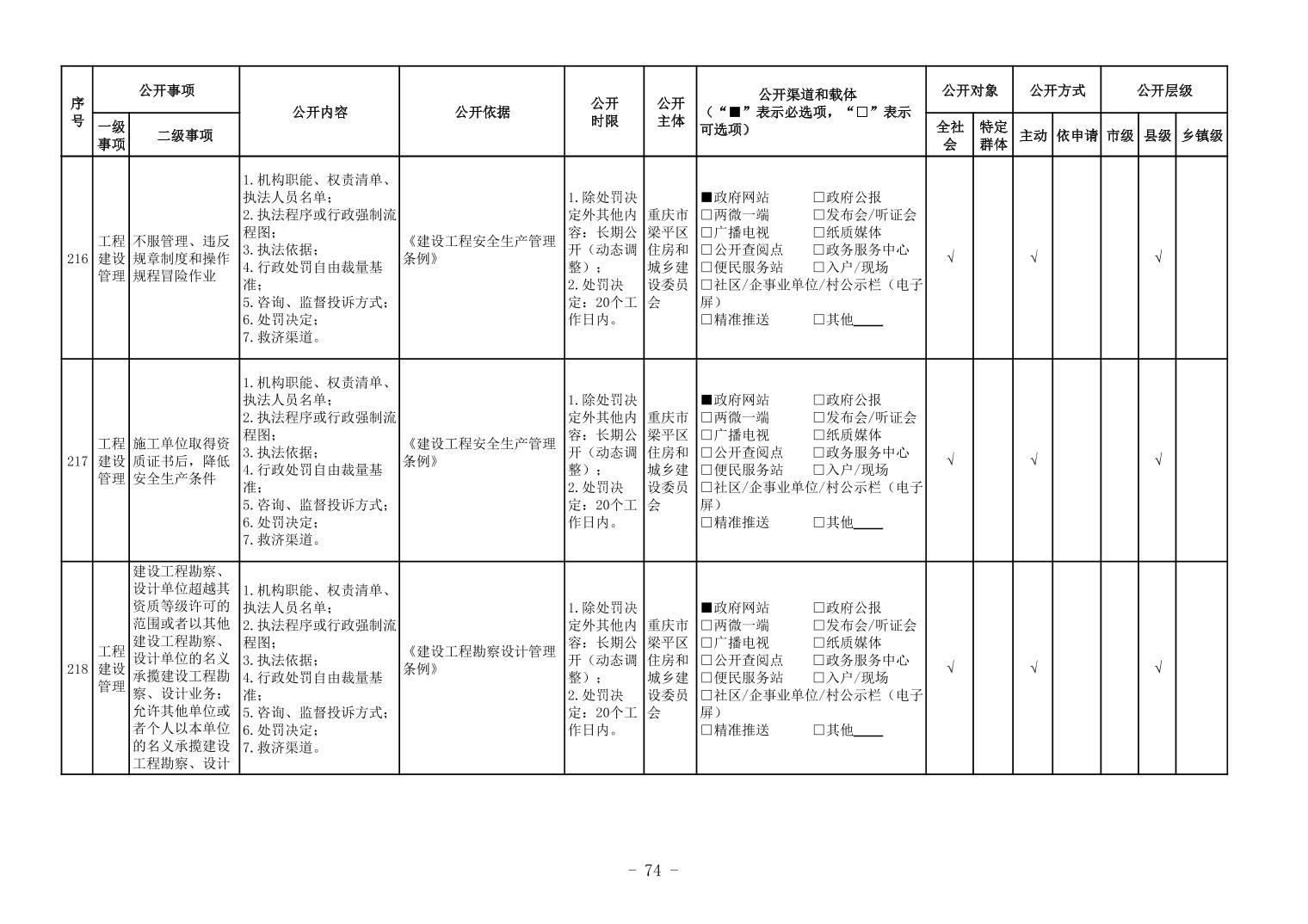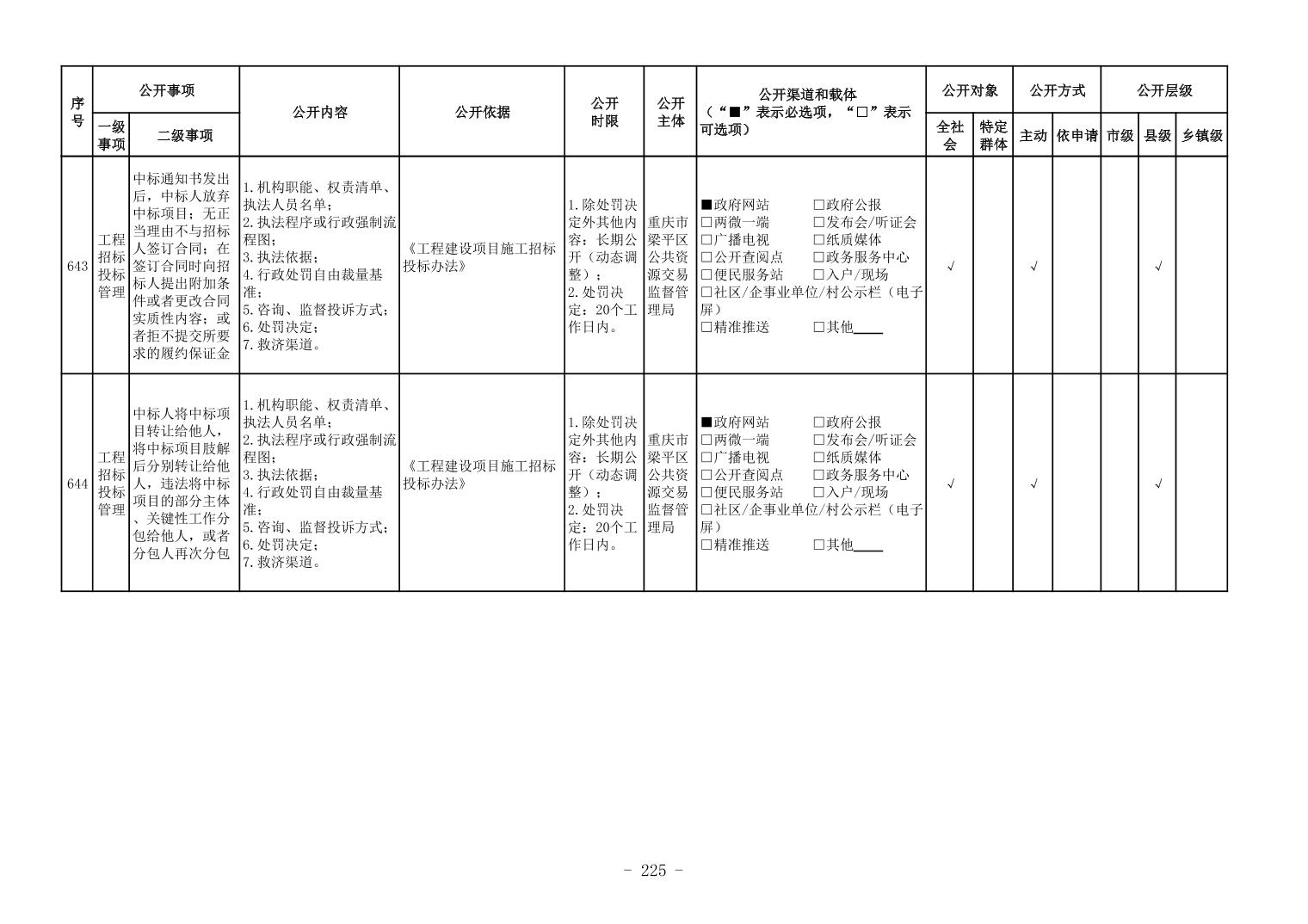 重慶市梁平區城市綜合執法領域基層政務公開標準目錄