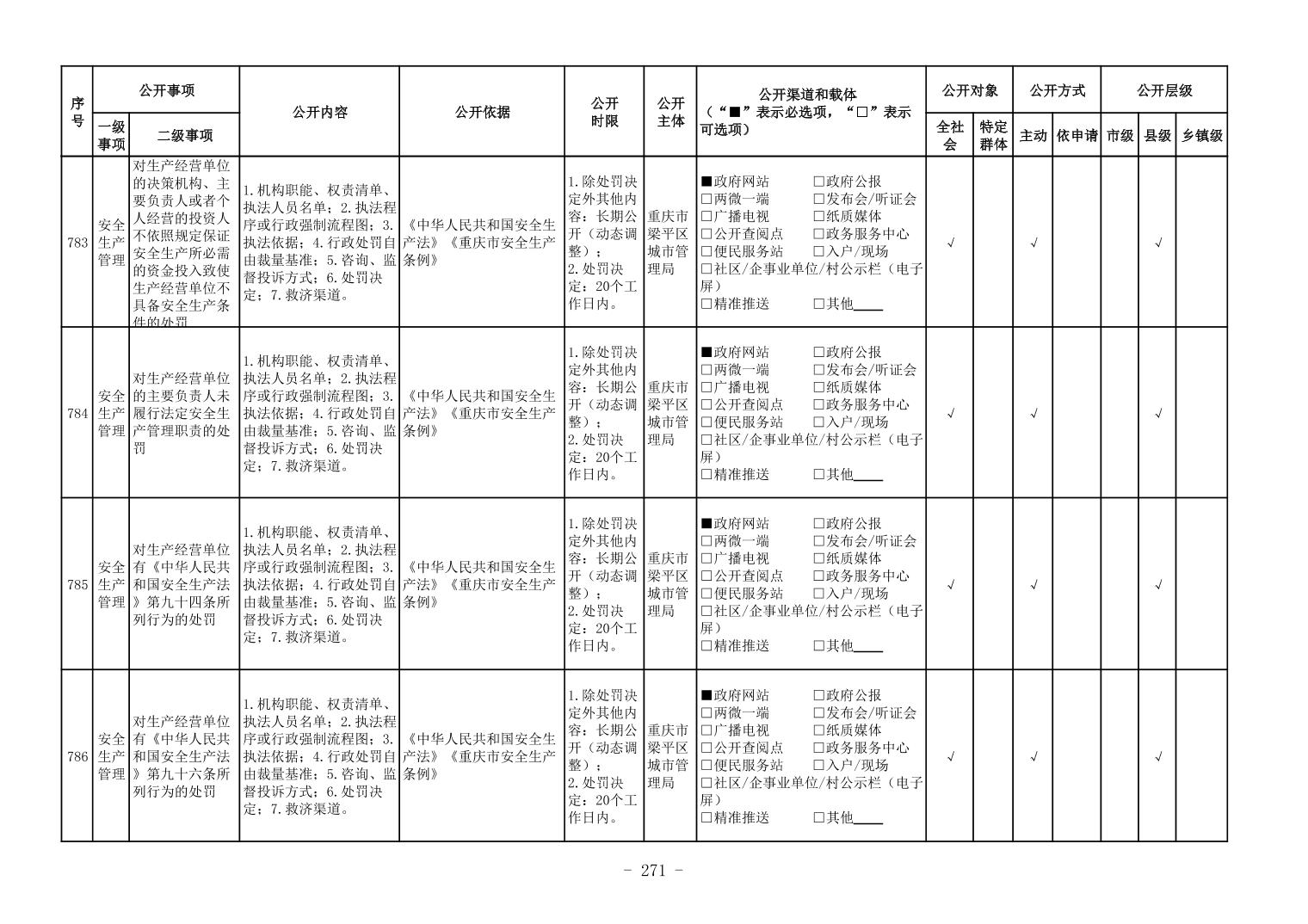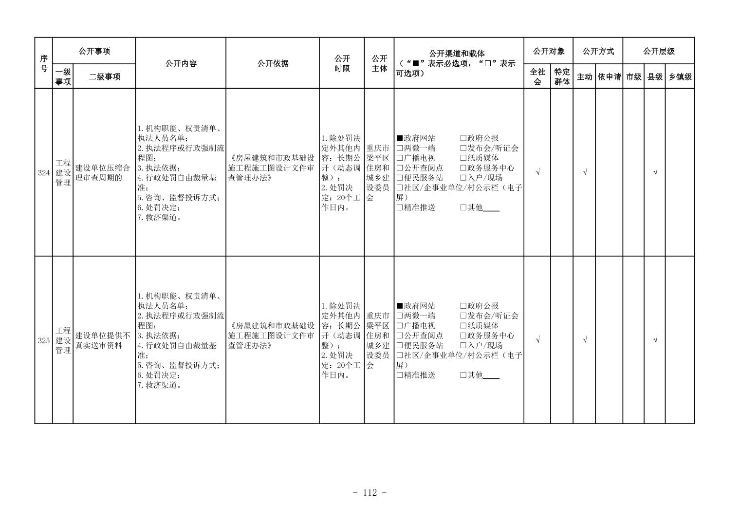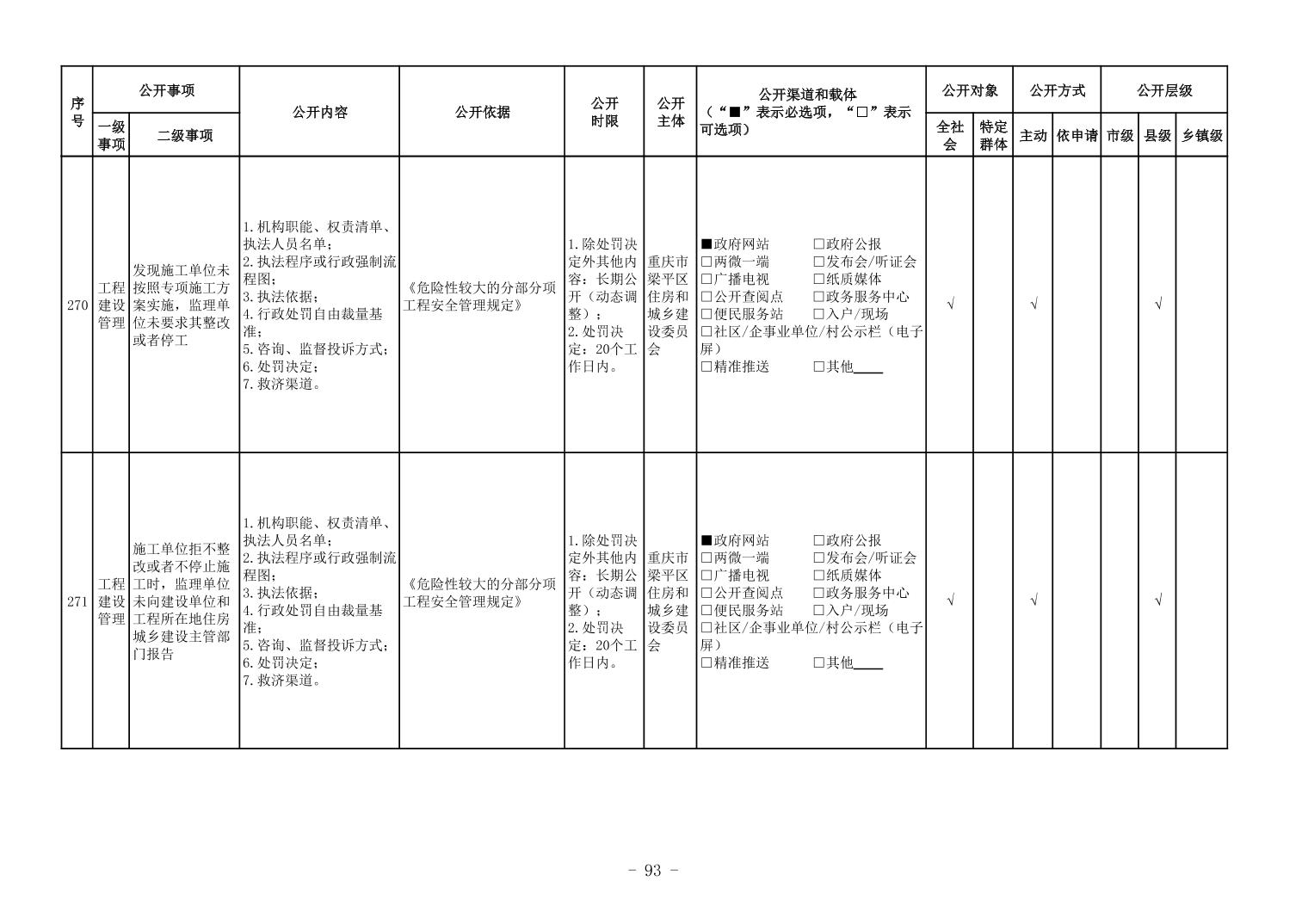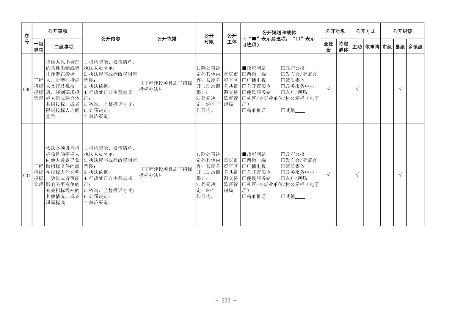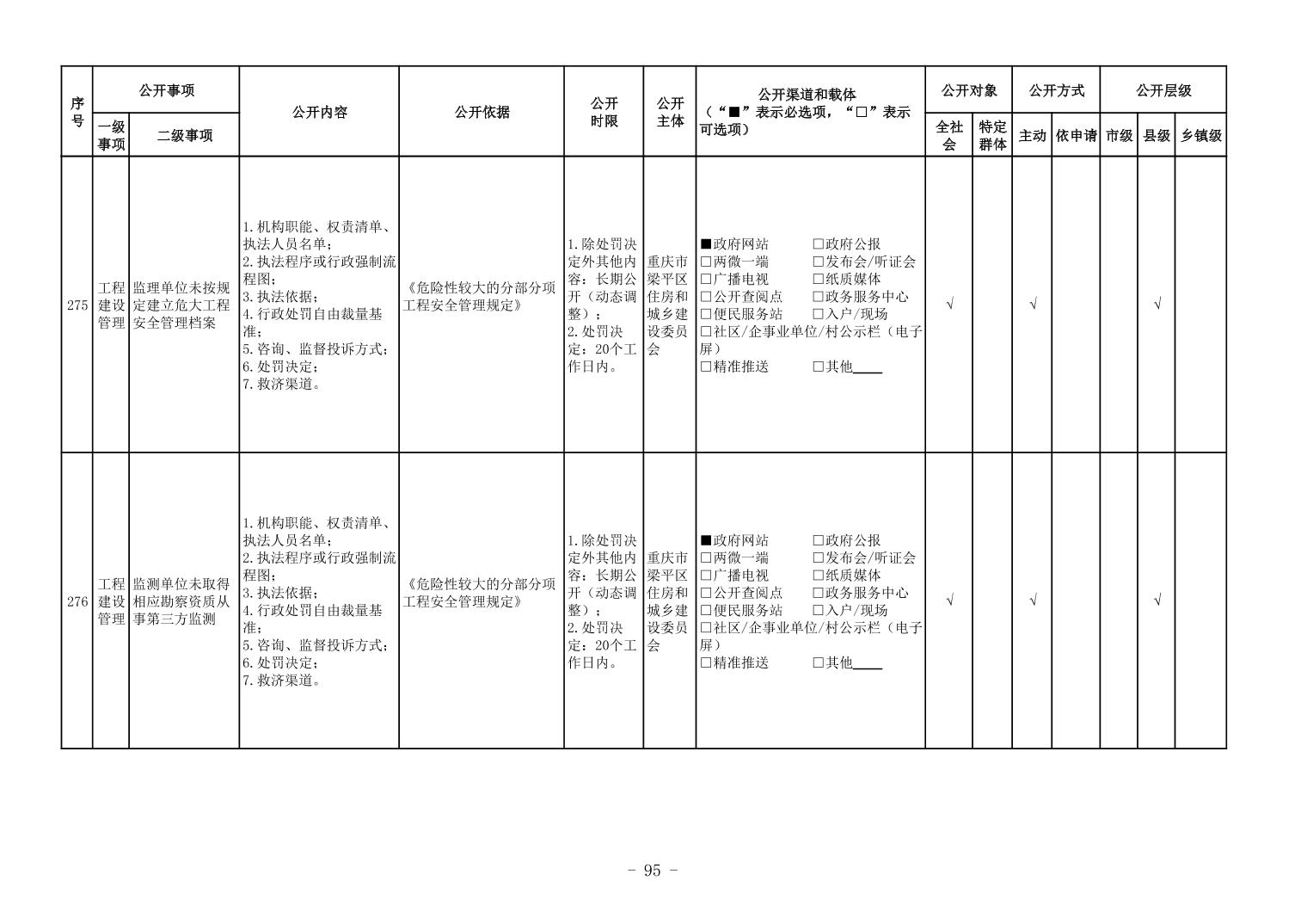 重慶市梁平區城市綜合執法領域基層政務公開標準目錄