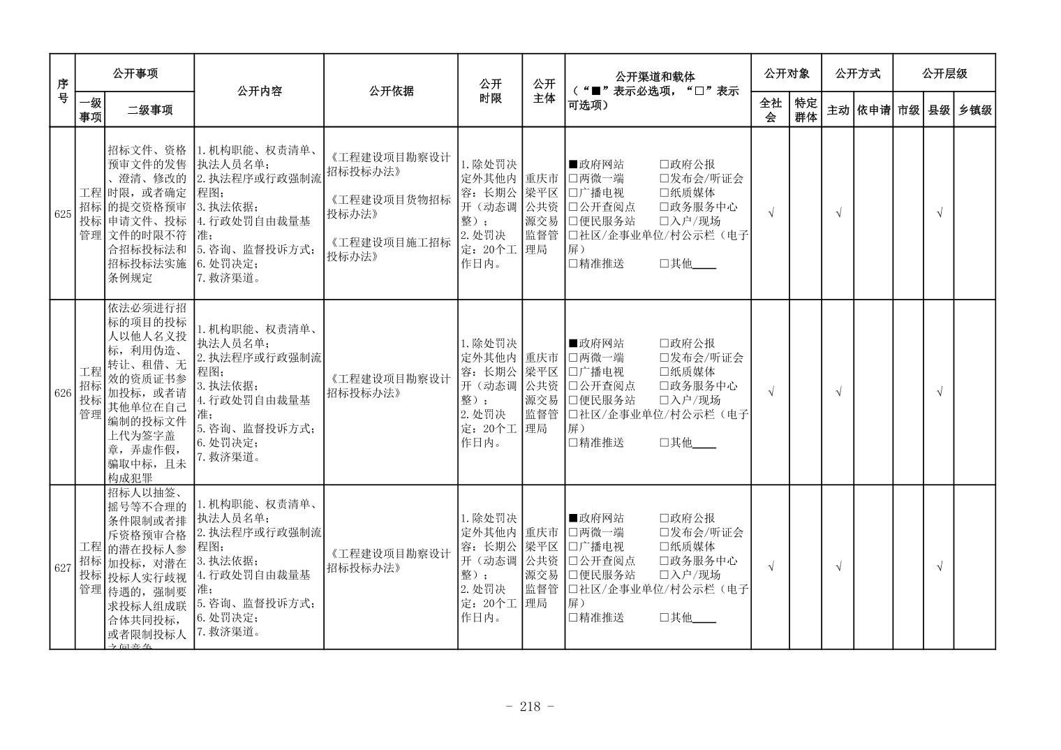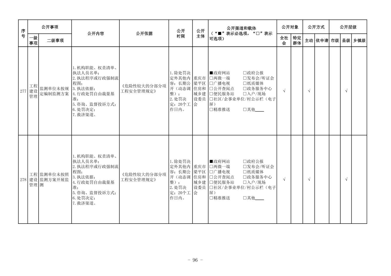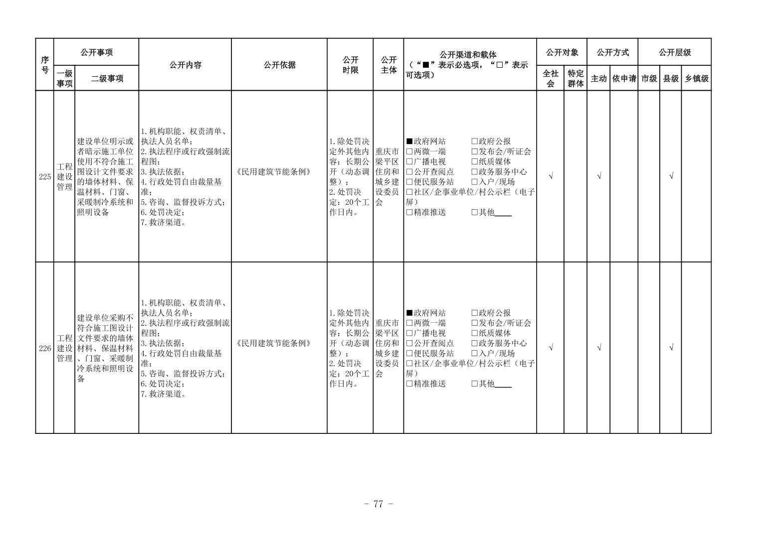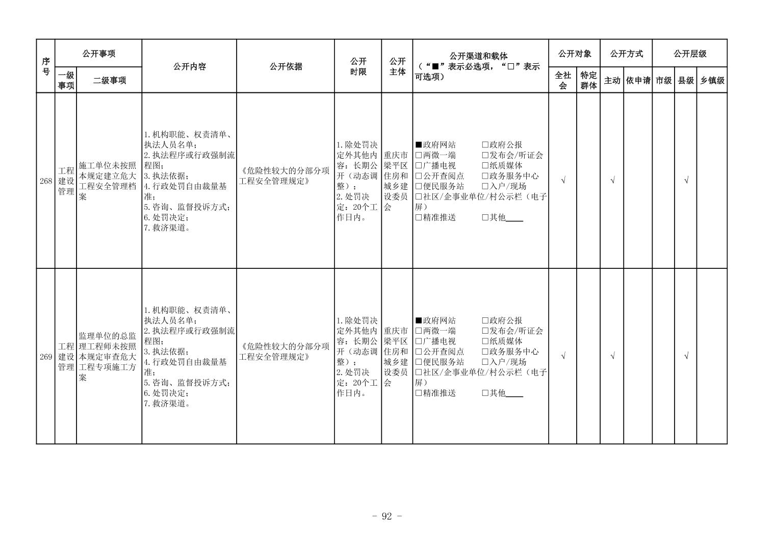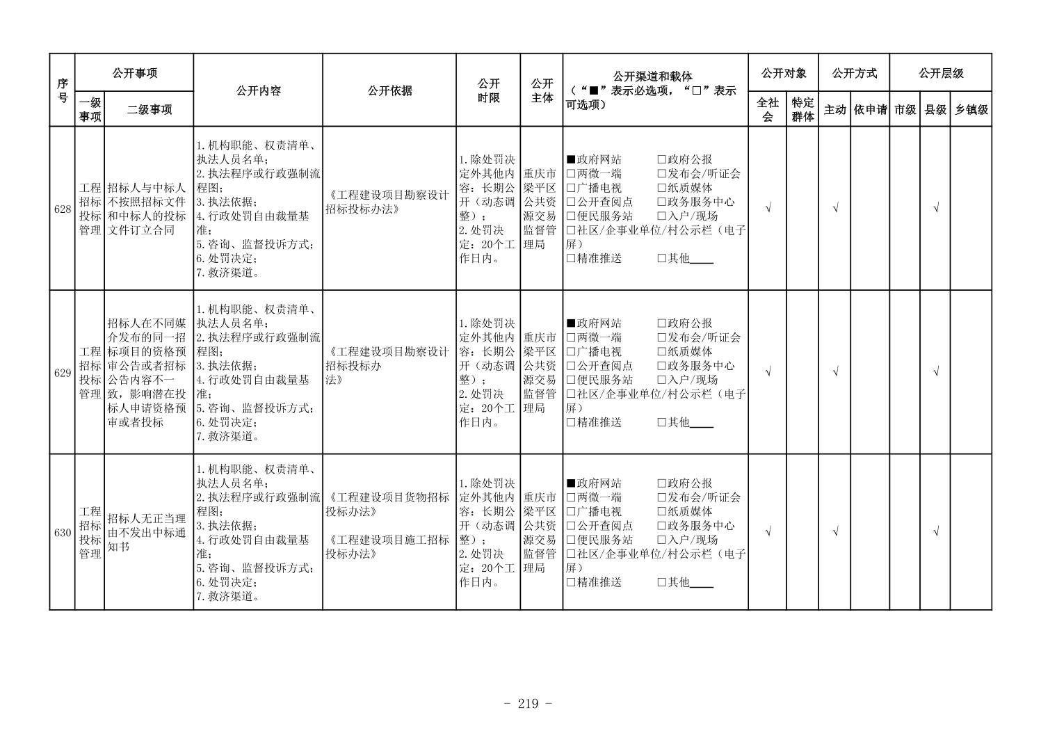 重慶市梁平區城市綜合執法領域基層政務公開標準目錄