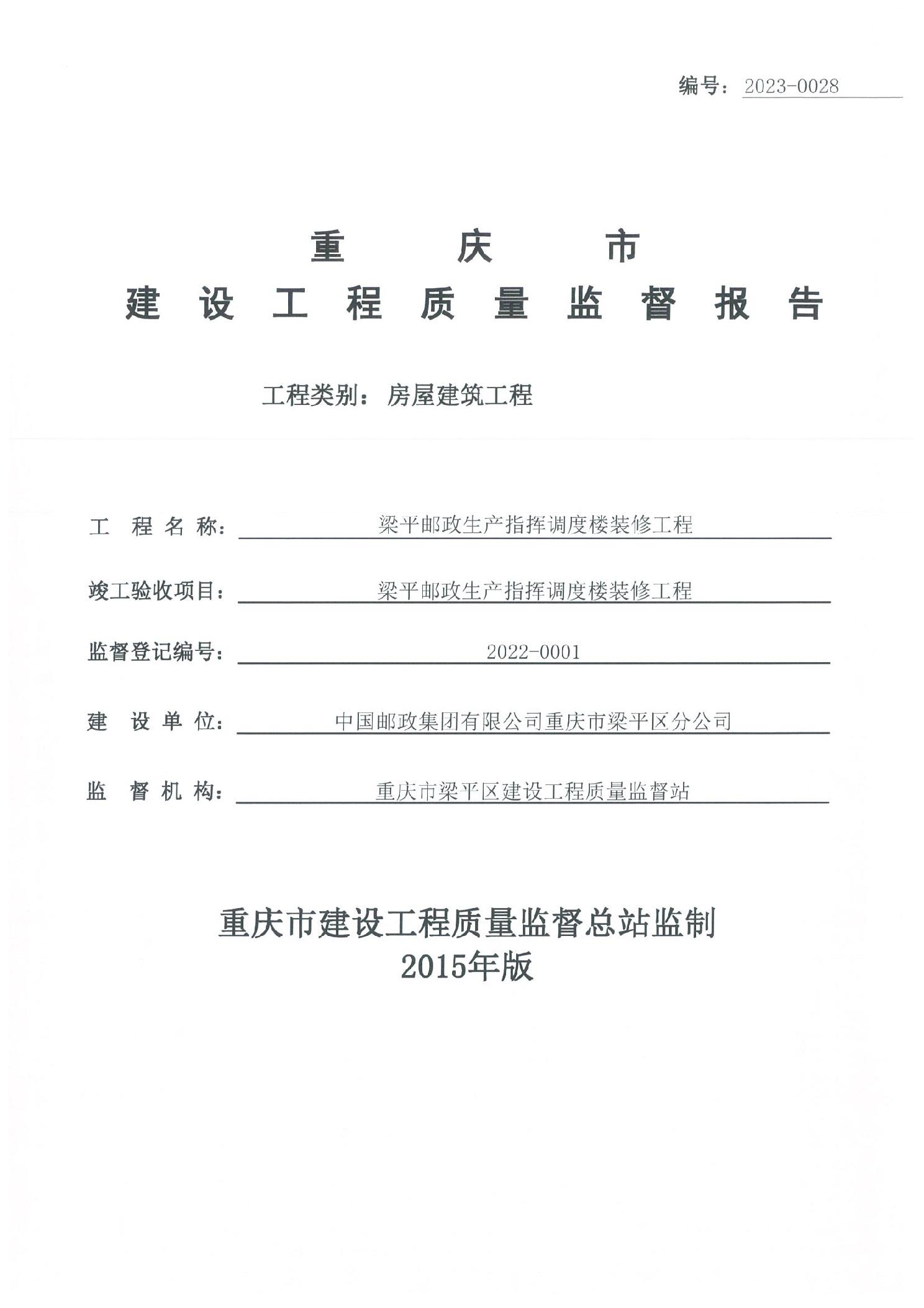| 標題 | 梁平郵政生產指揮電鍍樓裝修工程質量監督報告 | ||