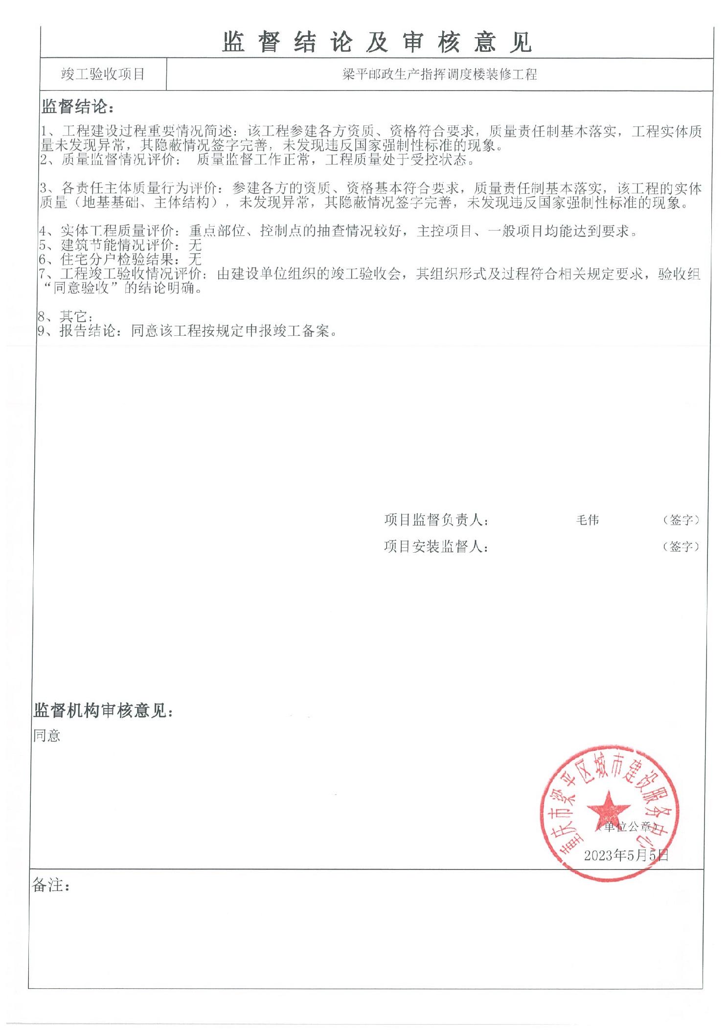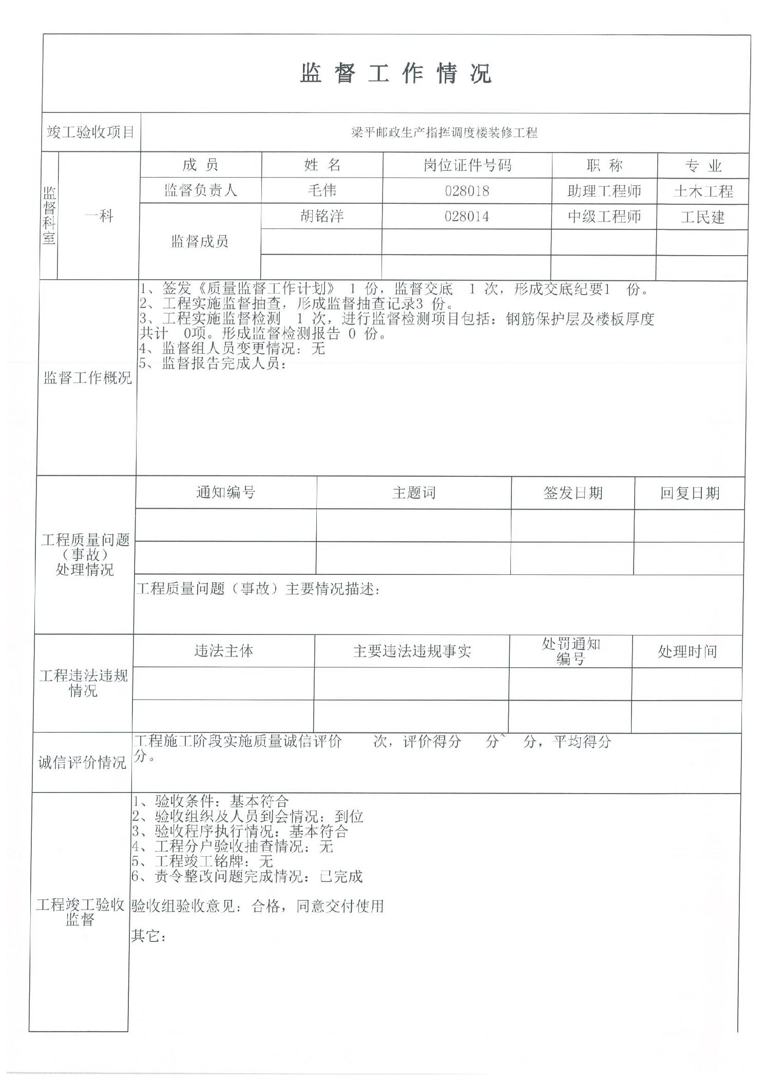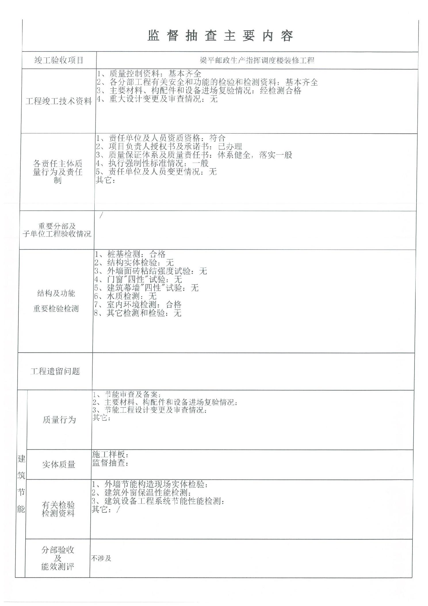 | 標題 | 梁平郵政生產指揮電鍍樓裝修工程質量監督報告 |