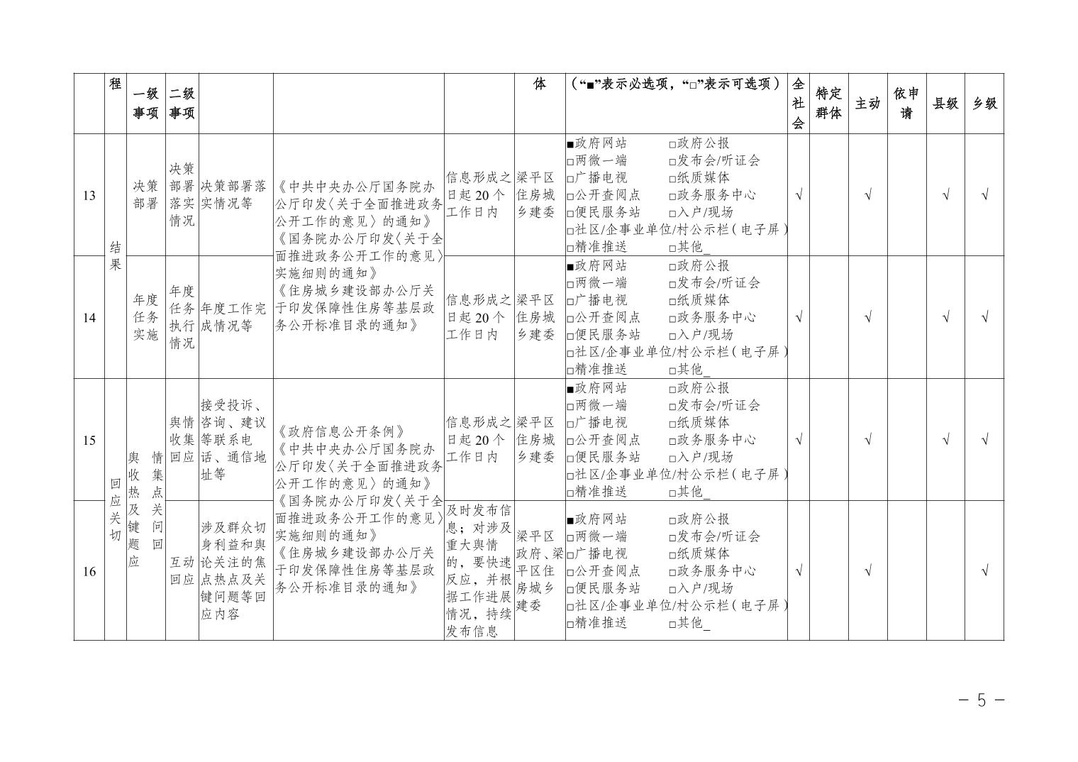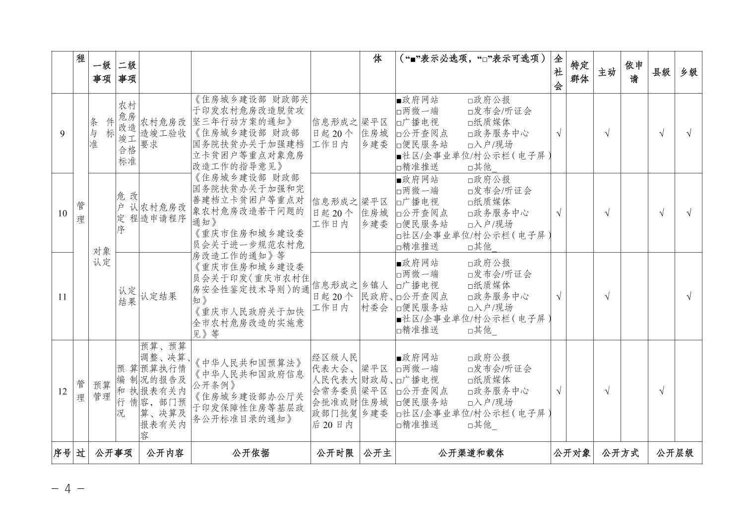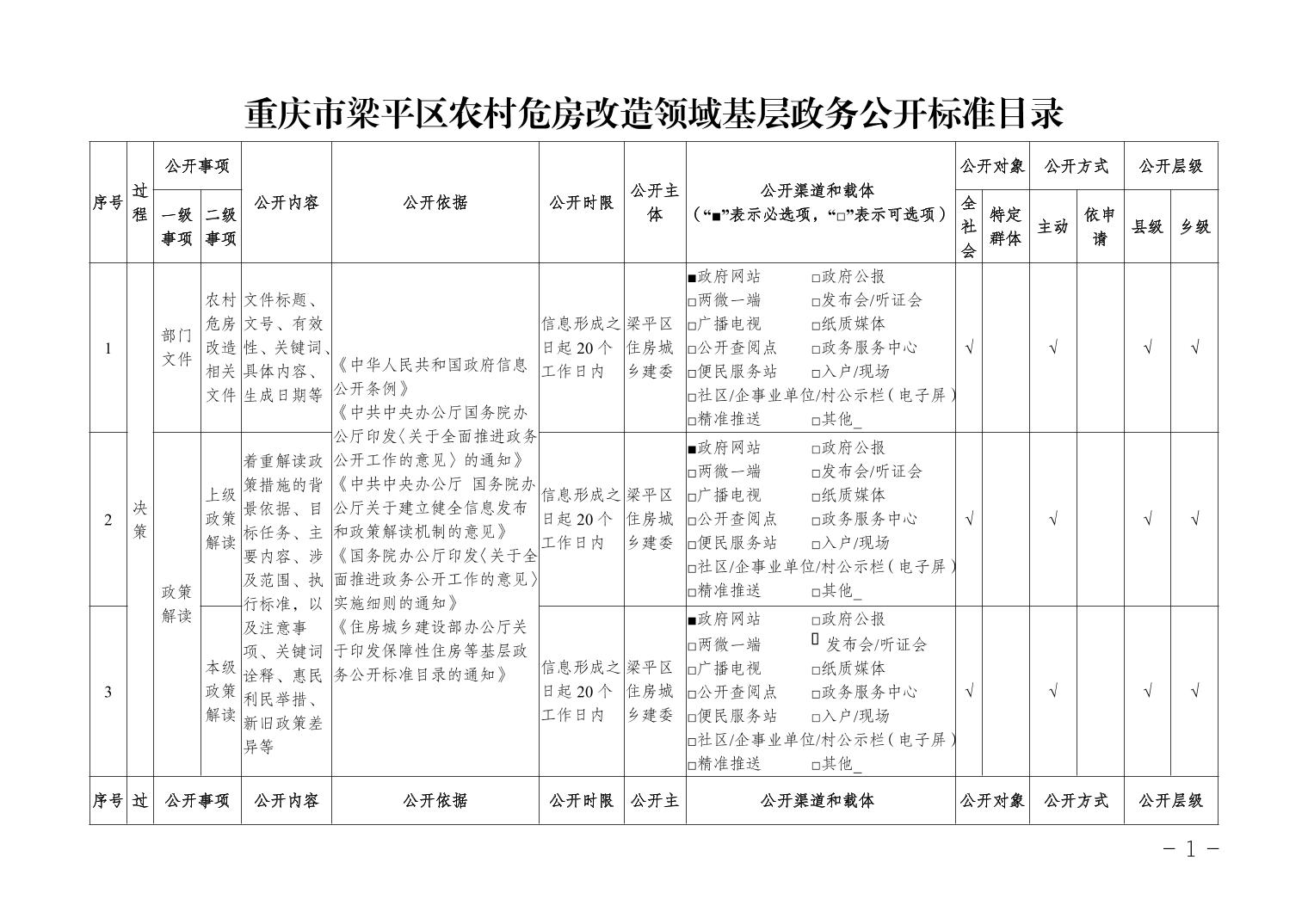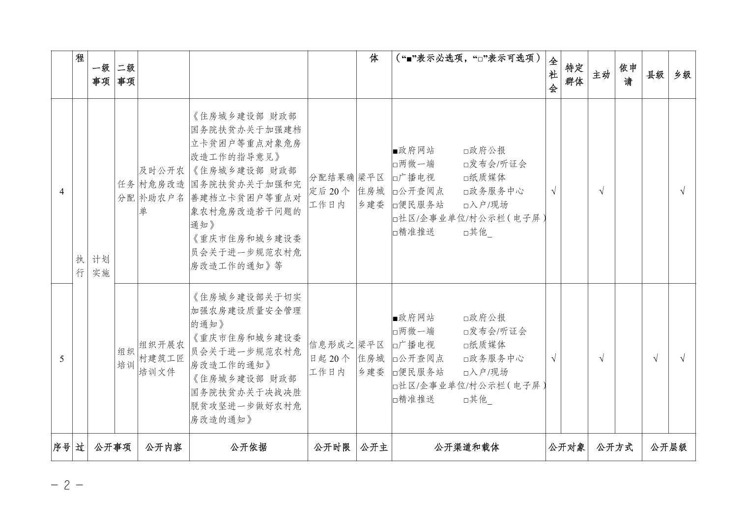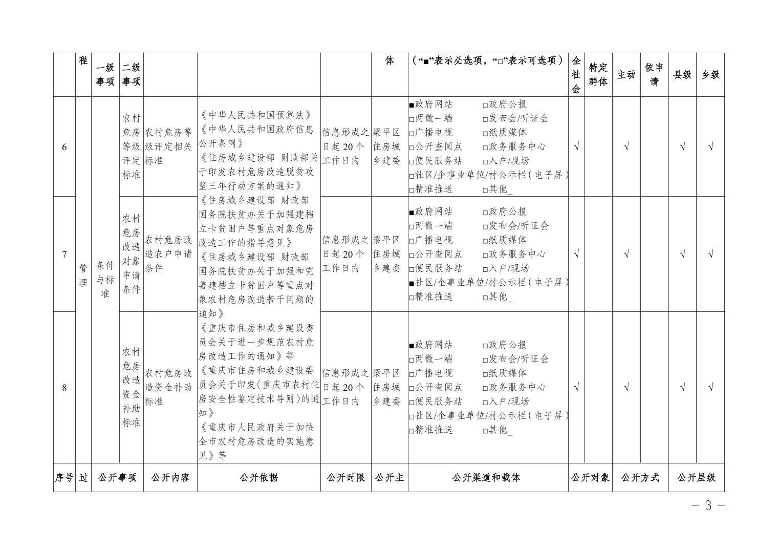 重慶市梁平區農村危房改造領域基層政務公開標準目錄