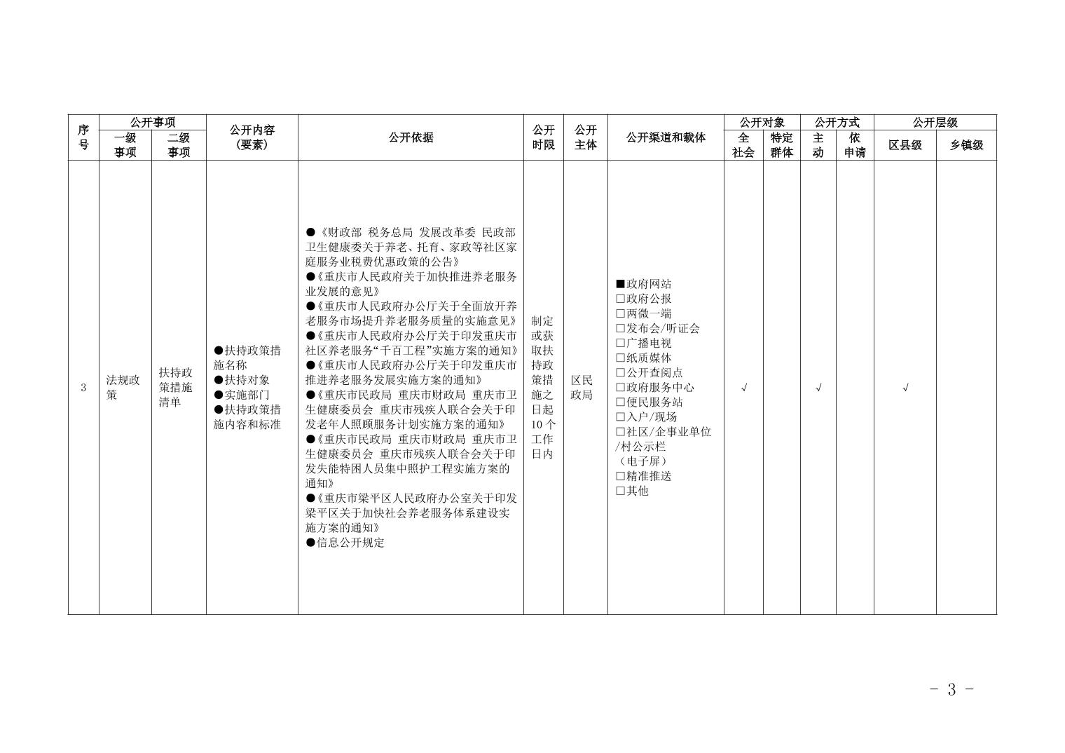 重慶市梁平區養老服務領域基層政務公開標準目錄(2025年)