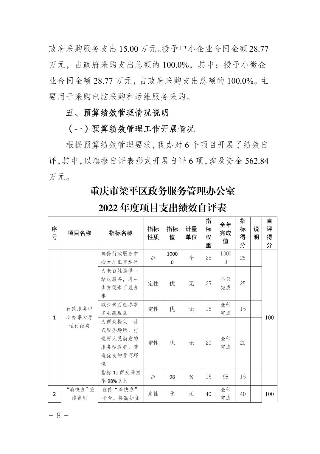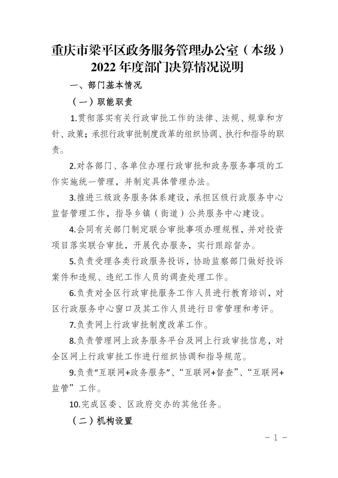 | 標題 | 重慶市梁平區(qū)政務服務管理辦公室(本級)2022年度部門決算情況說明 |
