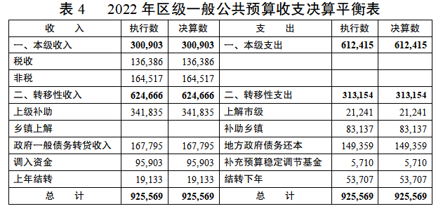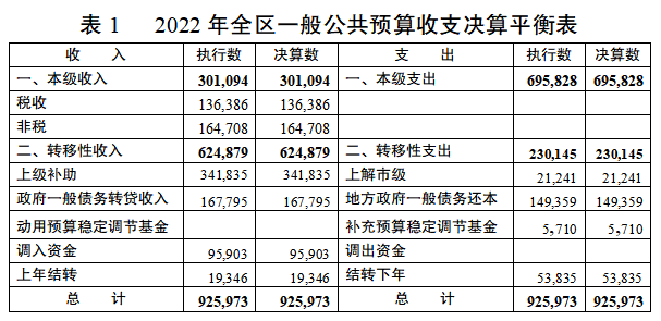 與區(qū)第十八屆人大第三次會(huì)議審議的2022年執(zhí)行數(shù)(下同)相比,收支數(shù)據(jù)一致。
